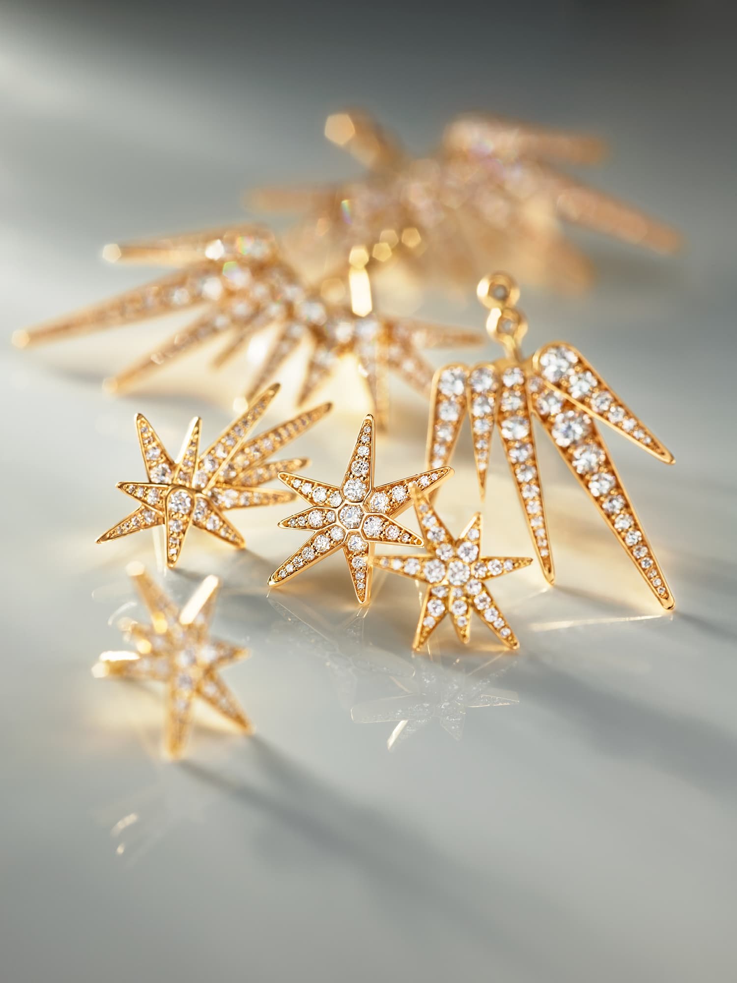 Belgian actress Émilie Dequenne shined at the 2023 red carpet in Shooting Stars earrings styled in asymmetrical manner. The diamond-studded Shooting Stars earring is crafted from 18 karat gold set with 135 diamonds totalling 1,13 carat.