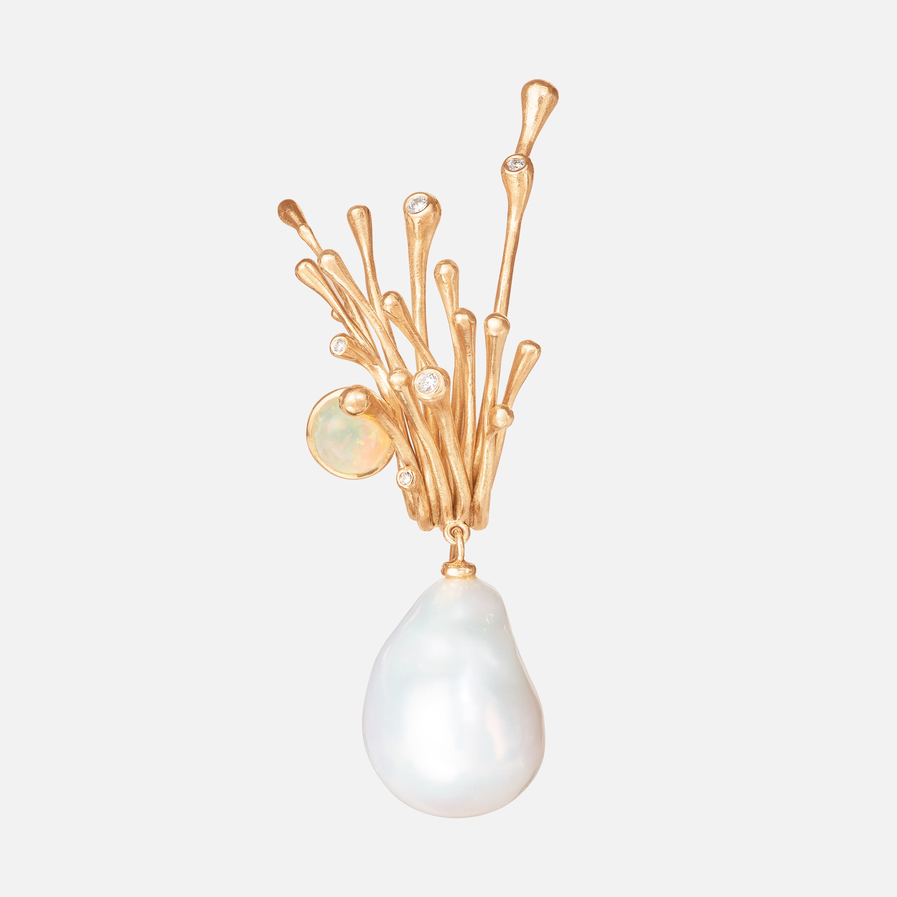 Designed by Charlotte Lynggaard, the BoHo Branch ear clip large is crafted from 18 karat yellow gold with 5 hand-set diamonds 0.05 carat TW. VS. and a 1,2 carat, 6 mm opal. The ear clip has two eyelets for hanging pendants. The hammered and polished gold surfaces are hand-finished by master goldsmiths. Sold as a single piece, available for left or right ear. Part of the BoHo Collection. Please note: As gemstones are natural materials, each stone is absolutely unique. They will vary in colour and have individual, unique inclusions and features. Web-images of stones are only representatives of the unique stone you will receive when ordering the product, not the exact stone.