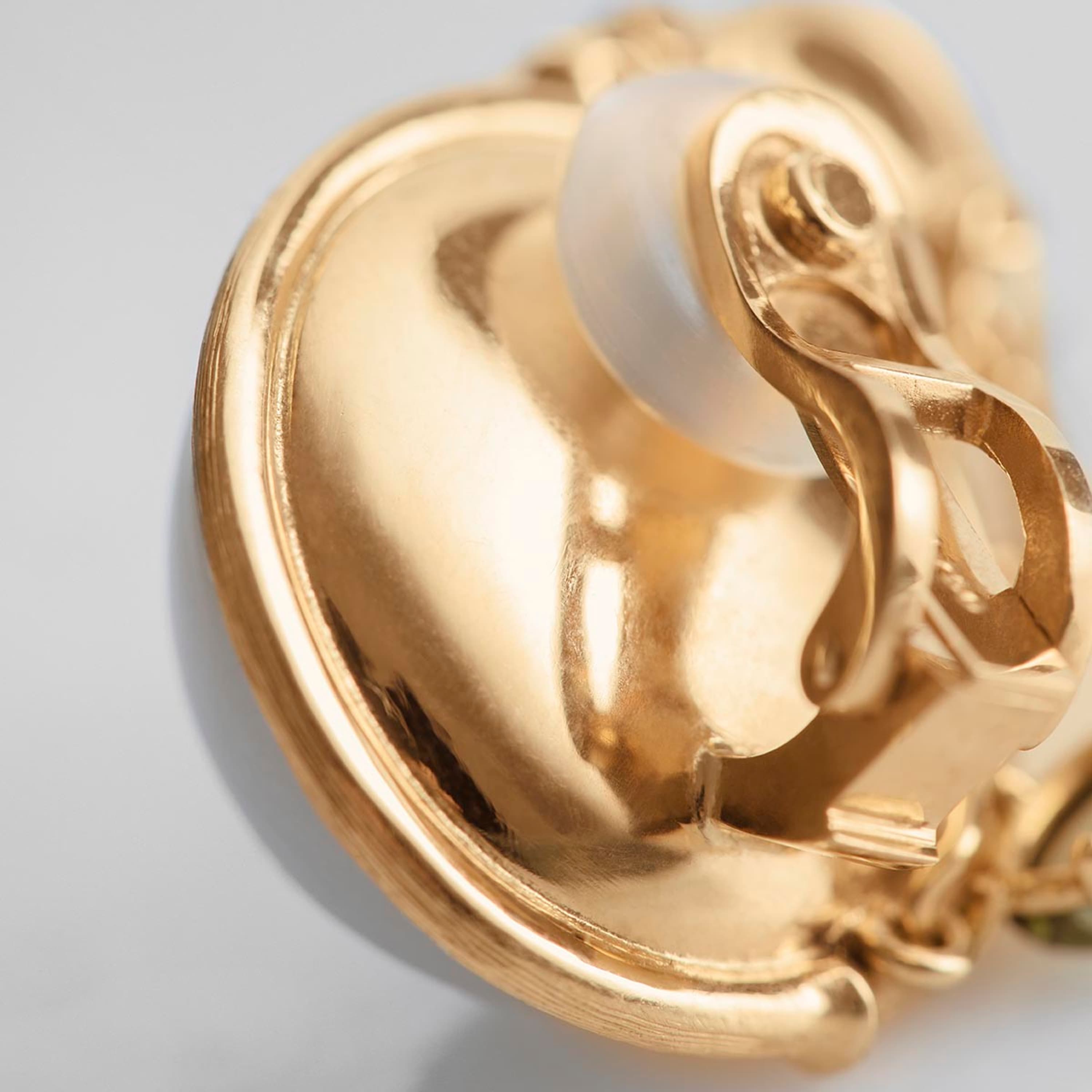 Designed by Charlotte Lynggaard, the BoHo Mabe pearl ear clips are crafted from 18 karat yellow gold with two 17 mm Mabe pearls, two 6 mm opals, and 12 hand-set diamonds 0.1 carat TW. VS. Each earring has two eyelets for hanging pendants. Sold as a pair. Part of the BoHo Collection.