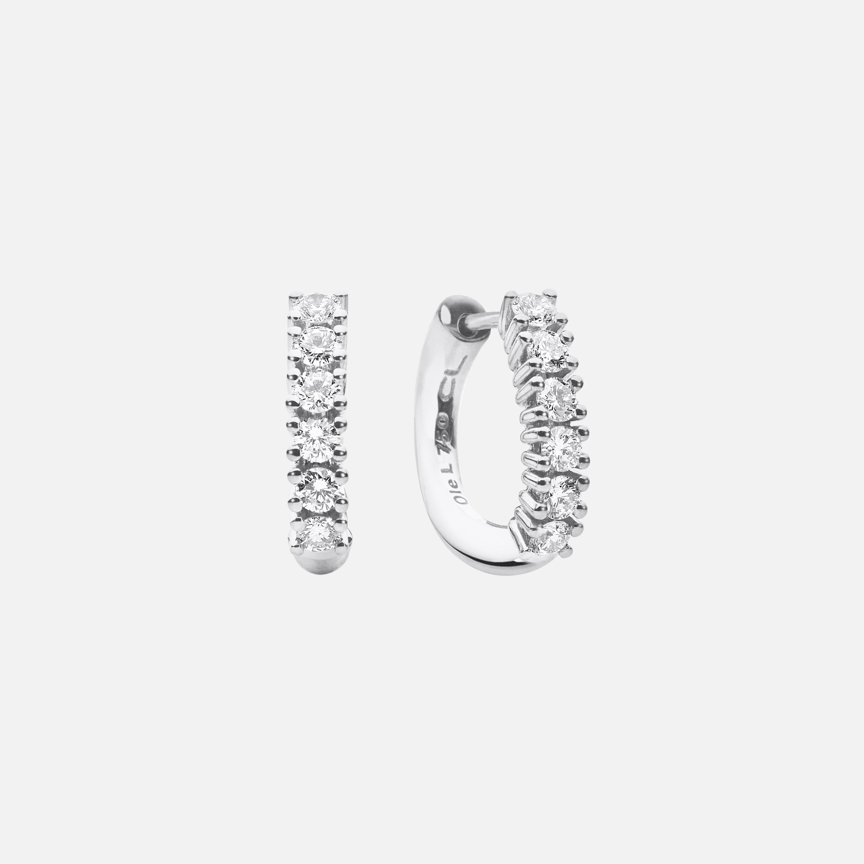 Designed by Ole Lynggaard, the Celebration Creol earrings are crafted from 18 karat polished white gold with 12 prong-set diamonds totalling 0,96 carat TW. VS. The height of each earring is 15,5 mm. Handcrafted by master goldsmiths. Sold as a pair. Part of the Ole Lynggaard Copenhagen Engagement and Wedding Collection.