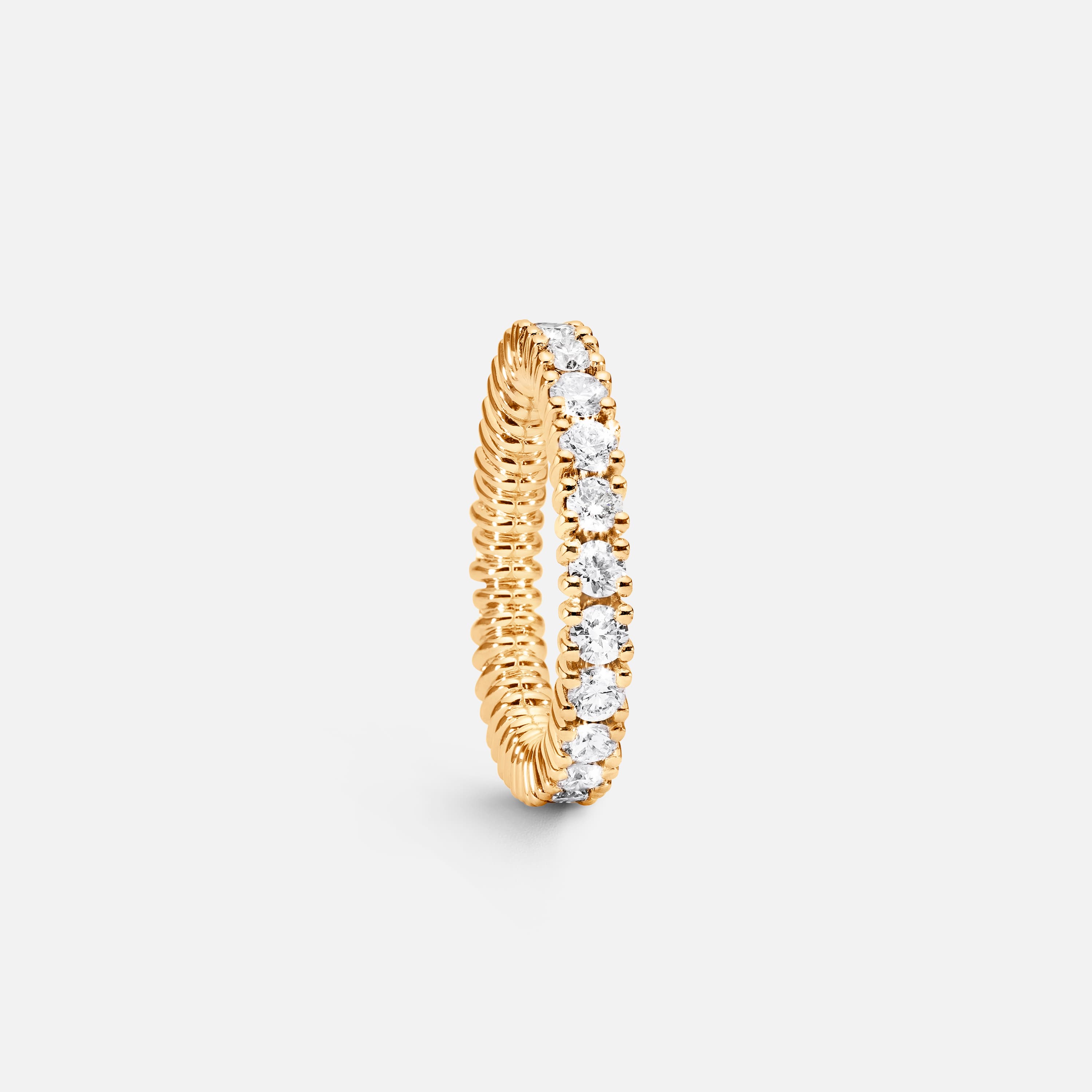 Designed by Ole Lynggaard, the Celebration eternity ring is crafted from 18 karat polished yellow gold with 23-26 prong-set diamonds, totalling 1,84-2,08 carat TW. VS. depending on ring size. Handcrafted by master goldsmiths. Part of the Ole Lynggaard Copenhagen Engagement and Wedding Collection.