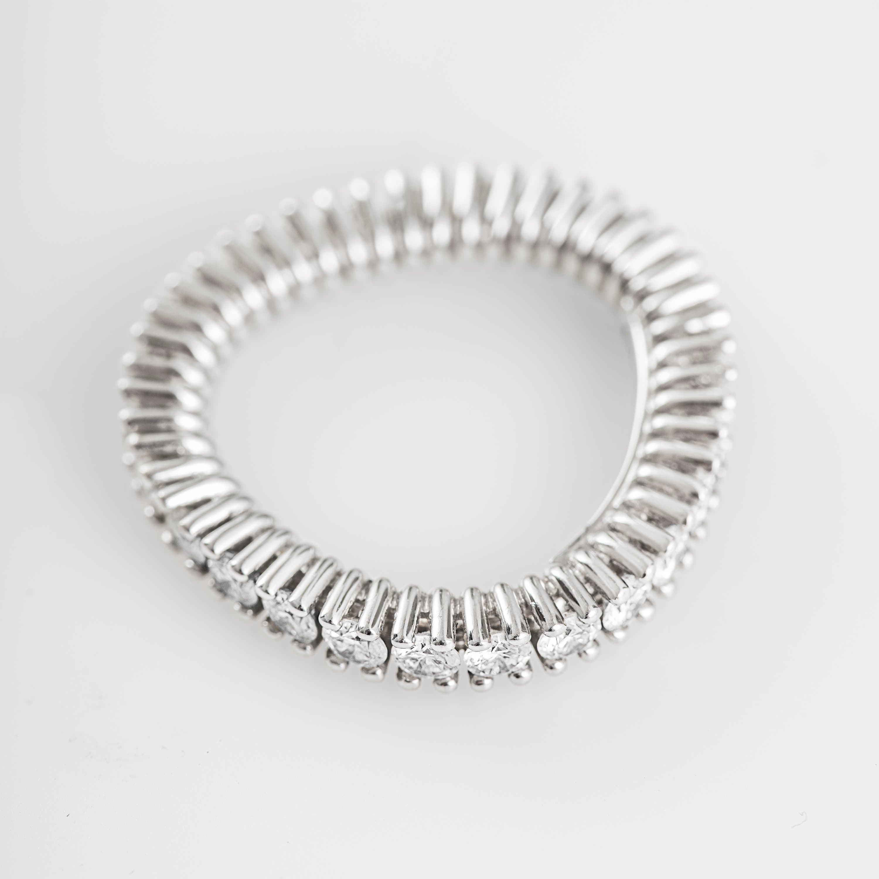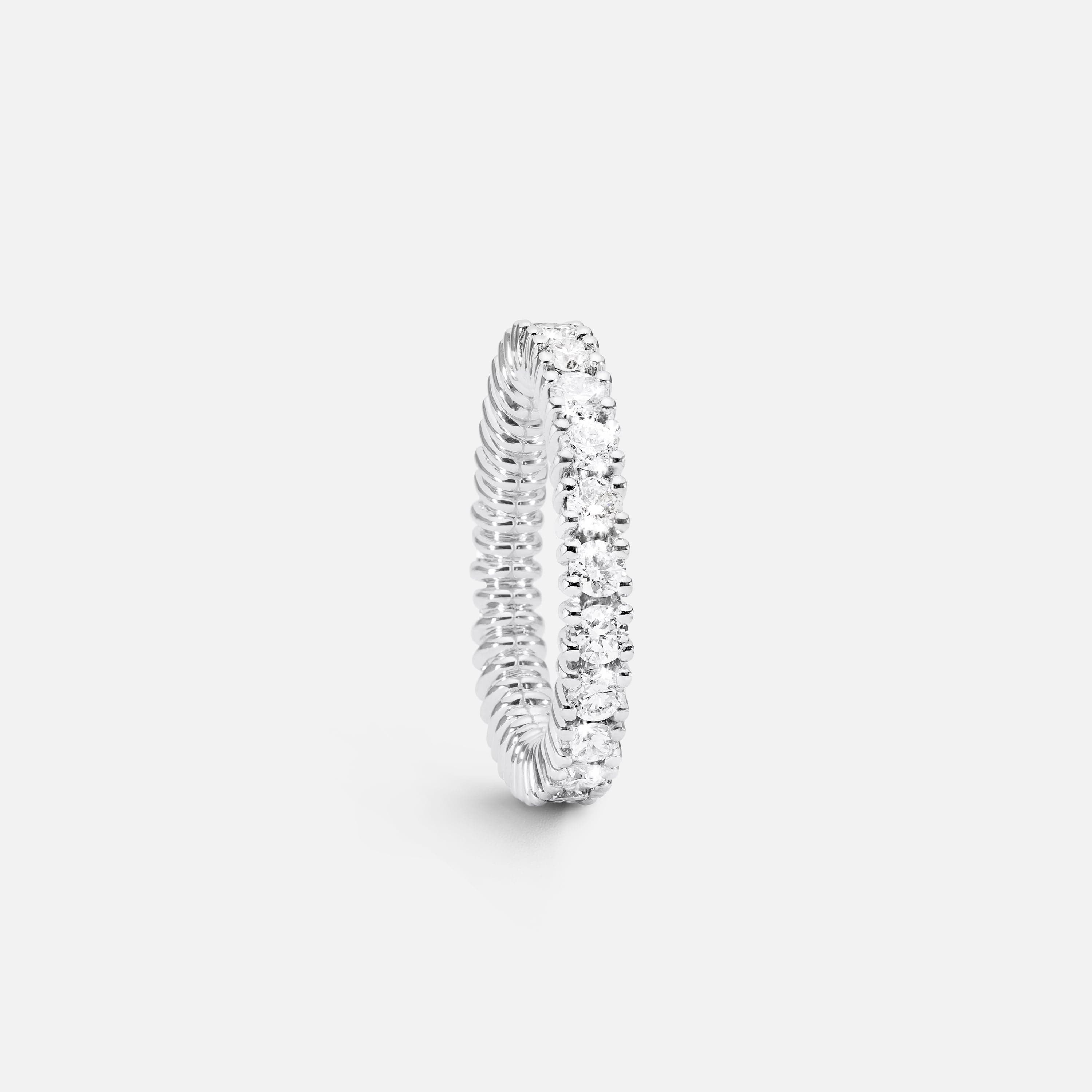 Designed by Ole Lynggaard, the Celebration eternity ring is crafted from 18 karat polished white gold with 23-26 prong-set diamonds, totalling 1,84-2,08 carat TW. VS. depending on ring size. Handcrafted by master goldsmiths. Part of the Ole Lynggaard Copenhagen Engagement and Wedding Collection.