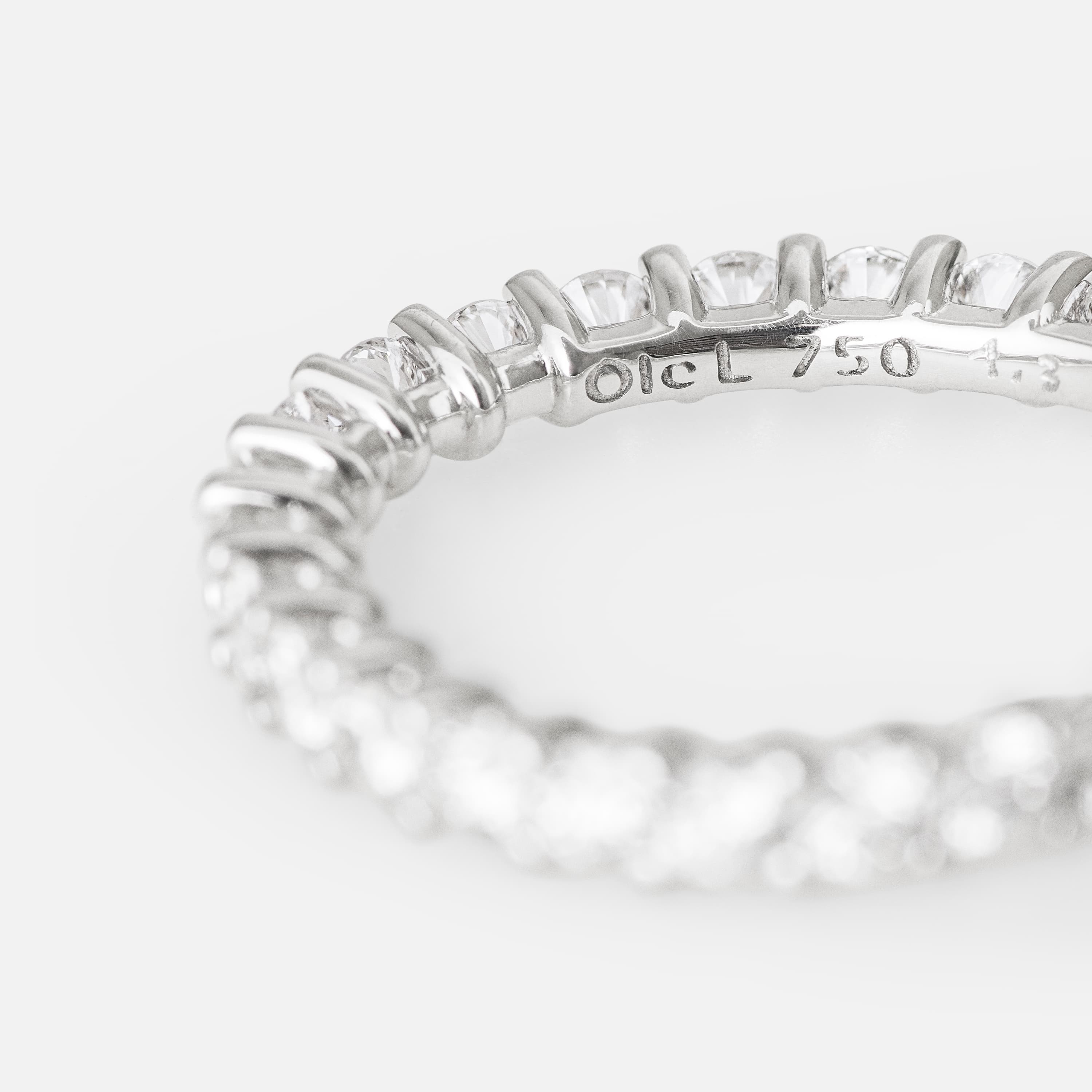 Designed by Ole Lynggaard, the Celebration eternity ring is crafted from 18 karat polished white gold with 24-26 prong-set diamonds, totalling 1,2-1,3 carat TW. VS. depending on ring size. Handcrafted by master goldsmiths. Part of the Ole Lynggaard Copenhagen Engagement and Wedding Collection.