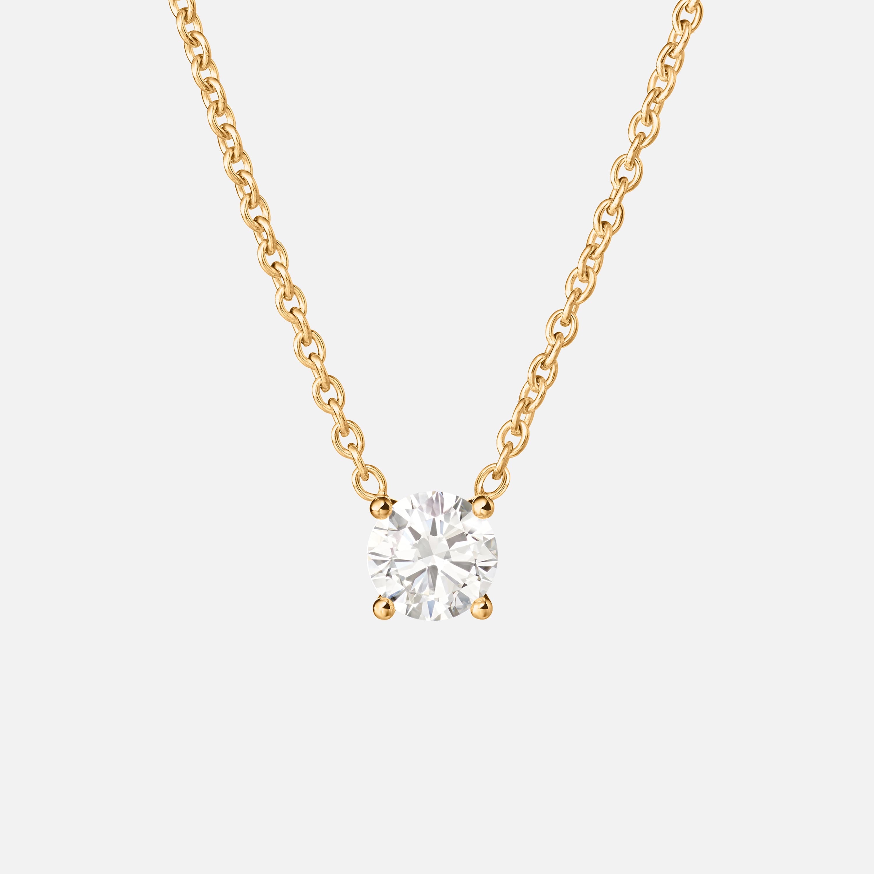 Designed by Ole Lynggaard, the Solitaire necklace, anchor 30, is crafted from 18 karat polished yellow gold and set with a brilliant cut diamond 0.50 carat WH SI1. The necklace is available in a 45 cm length. Handcrafted by master goldsmiths. Part of the Ole Lynggaard Copenhagen Engagement and Wedding Collection. Solitaire Necklace in Yellow Gold with Brilliant Cut Diamond | Ole Lynggaard