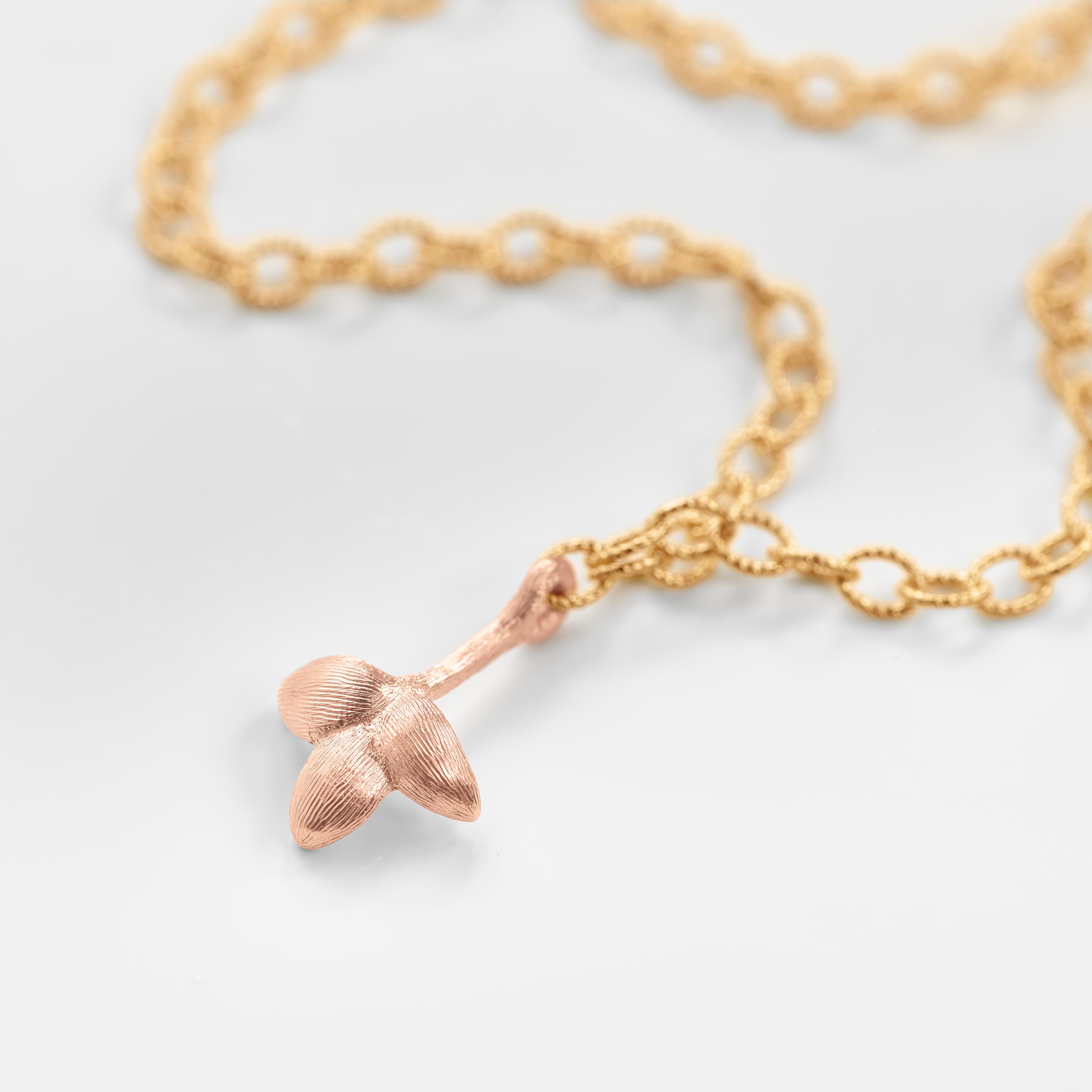 Designed by Charlotte Lynggaard for Ole Lynggaard Copenhagen, the thin Lotus twisted anchor collier with carabine is crafted from 18 karat yellow gold with an 18 karat polished rose gold leaf. Available as 80 cm or 90 cm long. The gold surfaces are hand-finished by master goldsmiths.