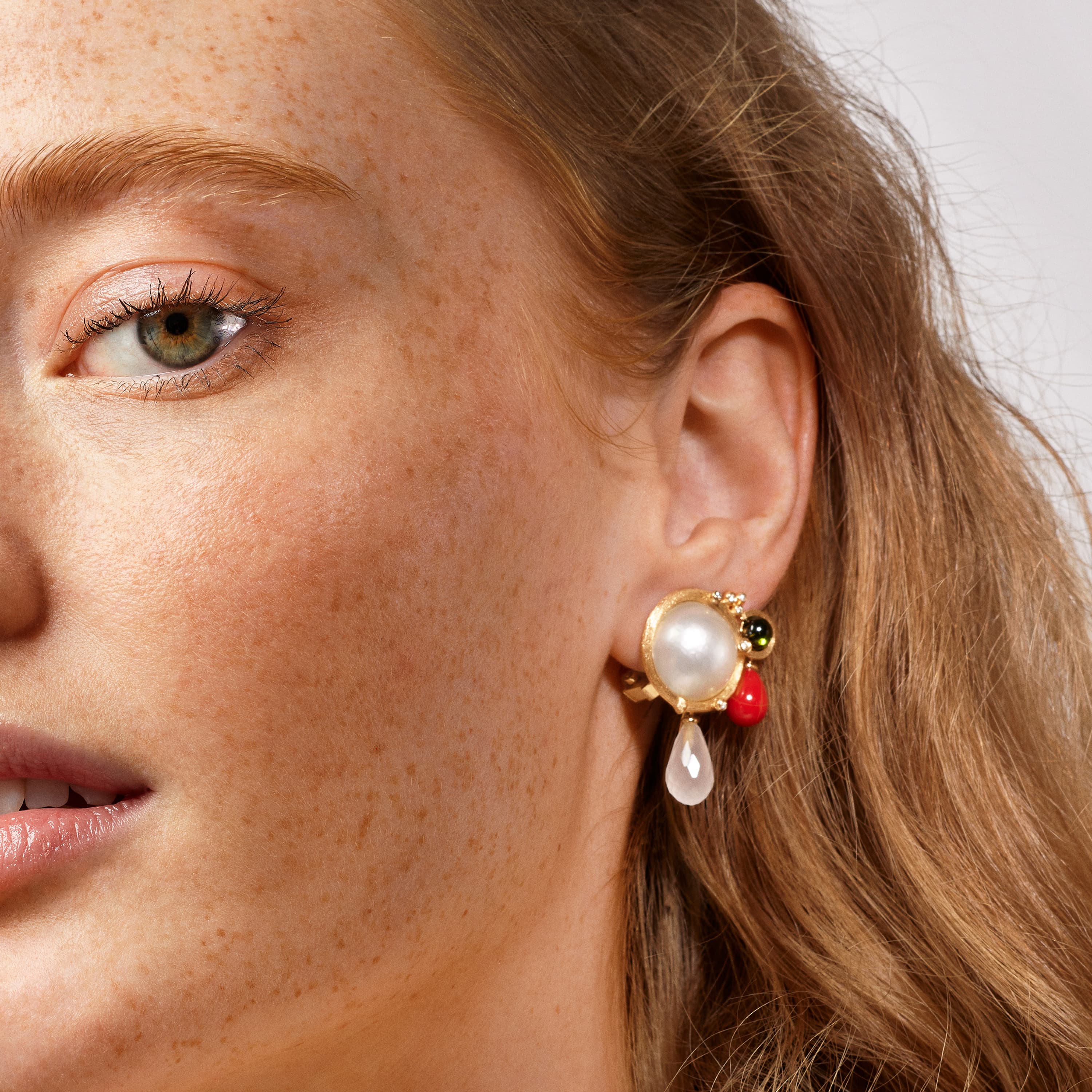 Designed by Charlotte Lynggaard, this earring pendant drop is crafted from 18 karat yellow gold with L8.5 x W6.5 mm red coral cabochon drop. Handcrafted by master goldsmiths, the pendant is made for hanging in earrings and pendants with eyelets. Sold as a single piece. Part of the Lotus Collection.