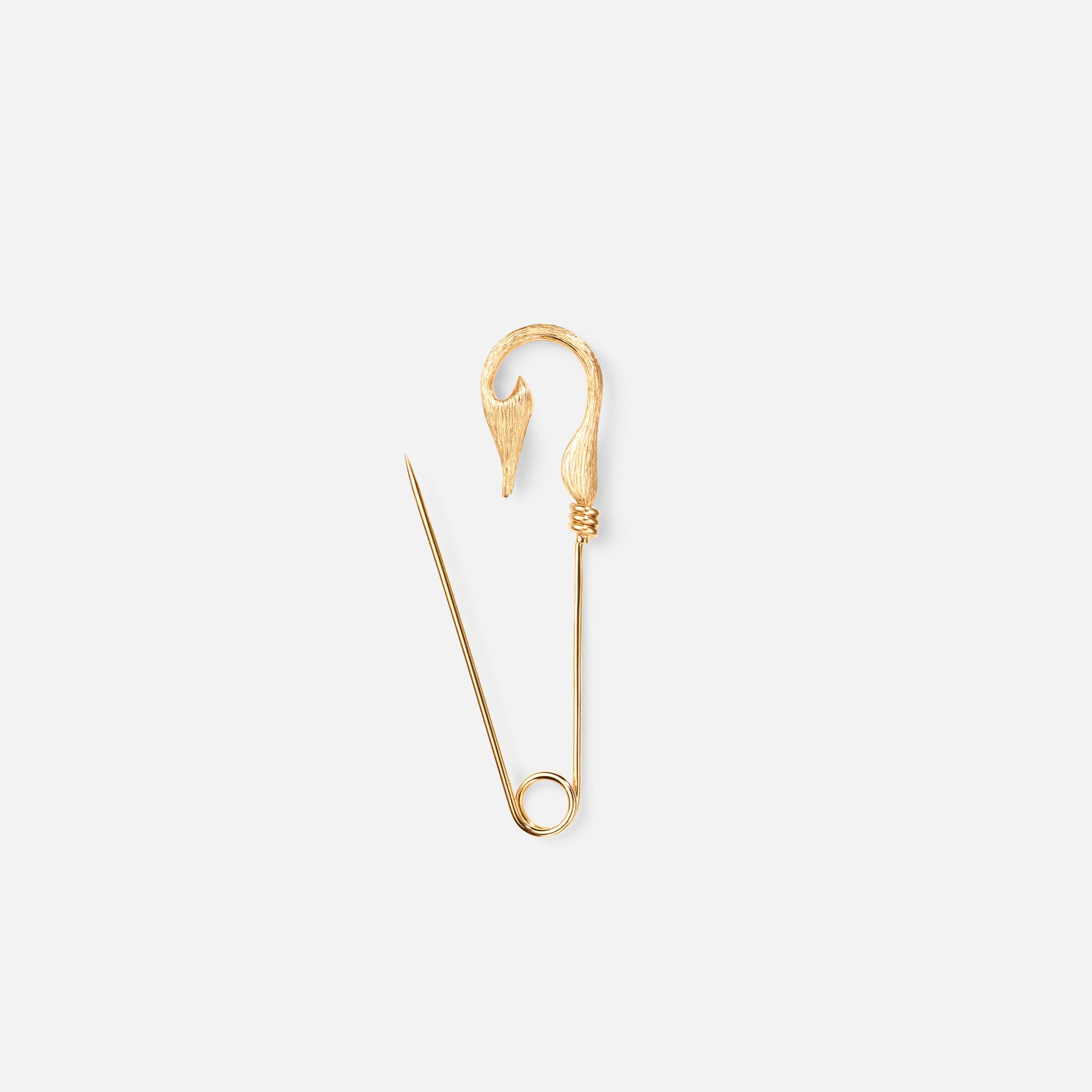 Designed by Sofia Lynggaard Normann, this Fish Hook brooch small is crafted from 18 karat yellow gold. The gold's surface is meticulously satinized by hand, resulting in a uniquely textured finish. The length of the brooch is 45 mm. Can be paired with pendants, sold separately. Part of The Under the Sea Collection.