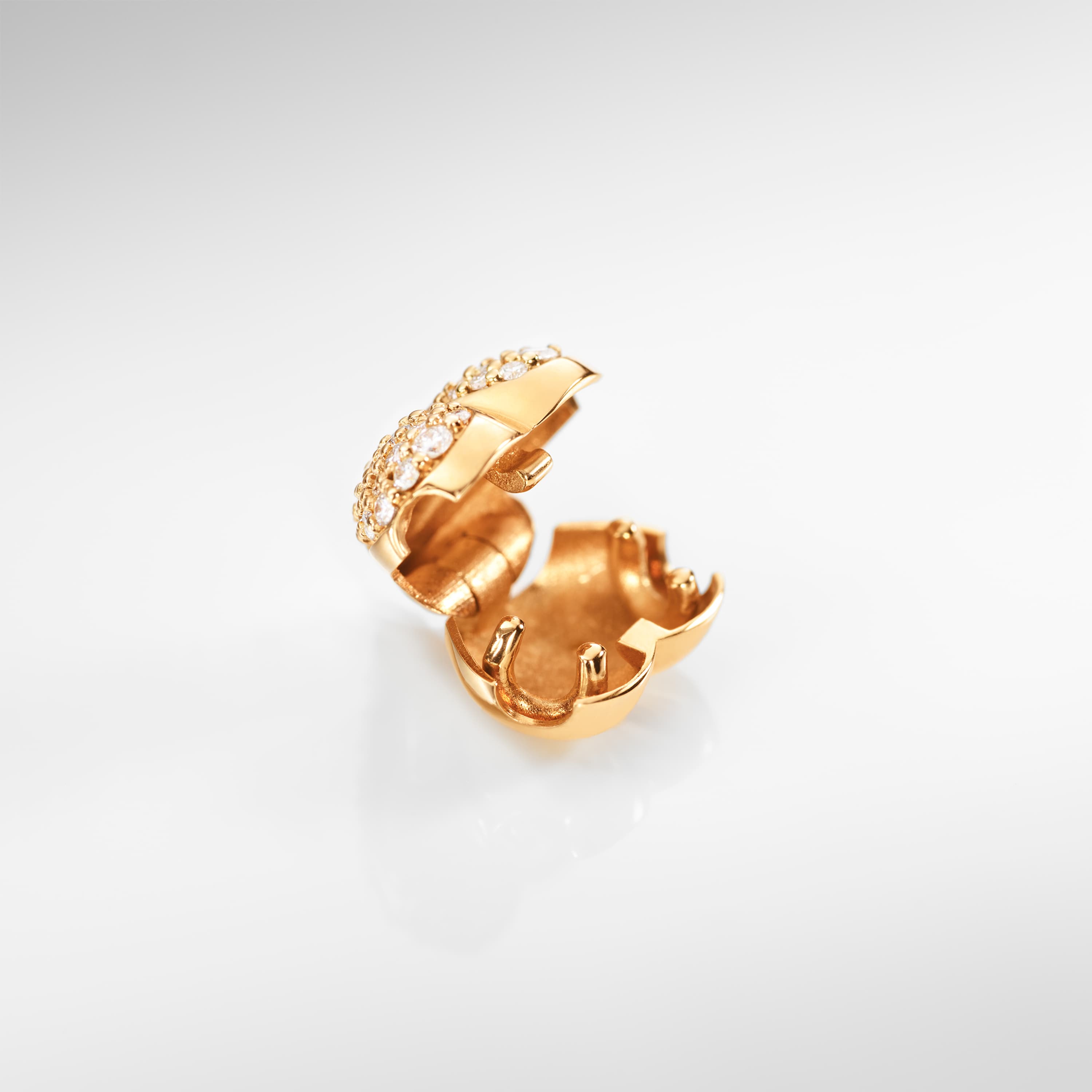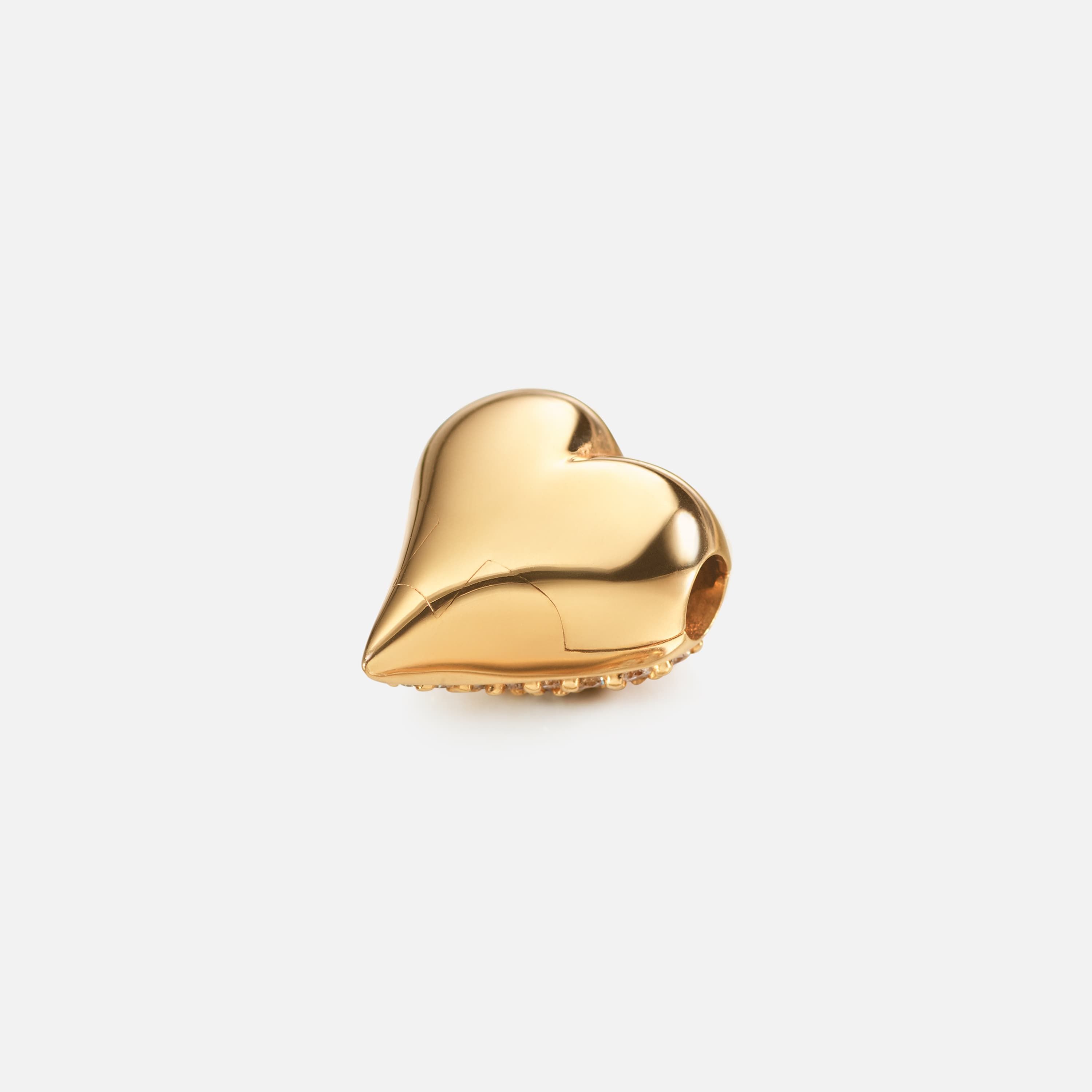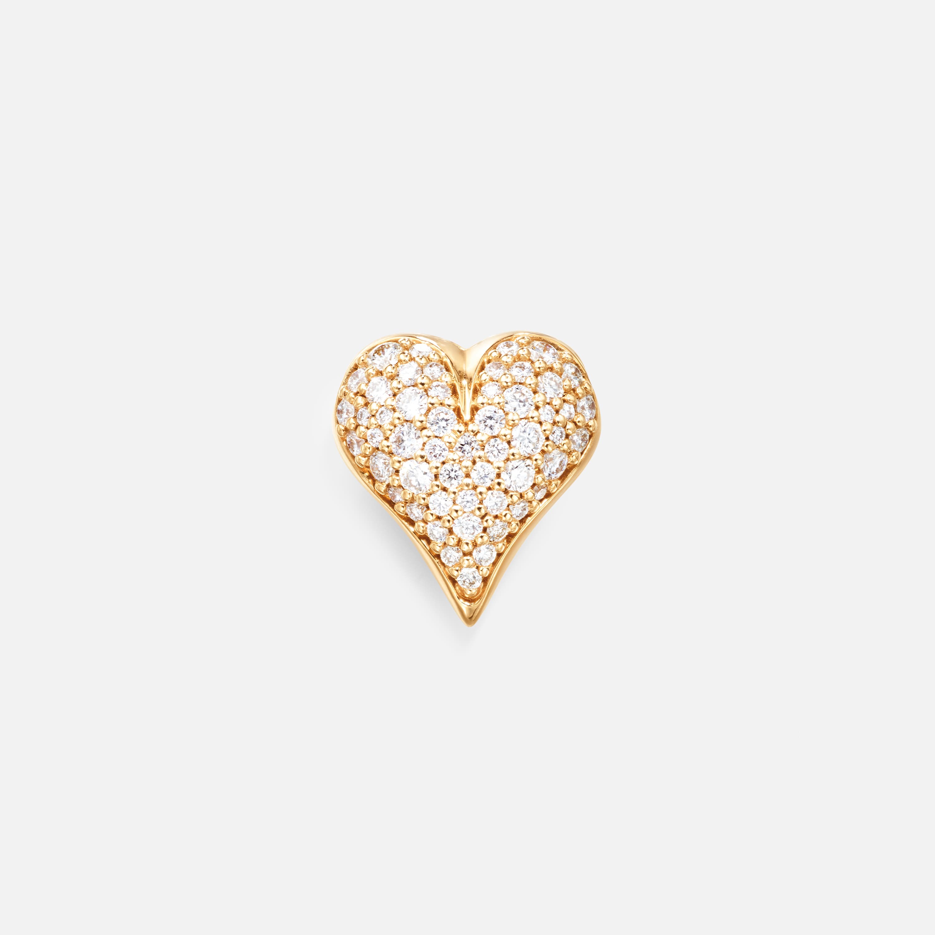 Designed by Charlotte Lynggaard, the Hearts clasp is crafted from 18 karat yellow gold and 52 pavé-set diamonds totalling 0,30 carat TW.VS. The gold surfaces are hand-polished by master goldsmiths. Can be used as a lock on Ole Lynggaard Copenhagen bead colliers or as a pendant on thin chain colliers. Part of the Hearts Collection.