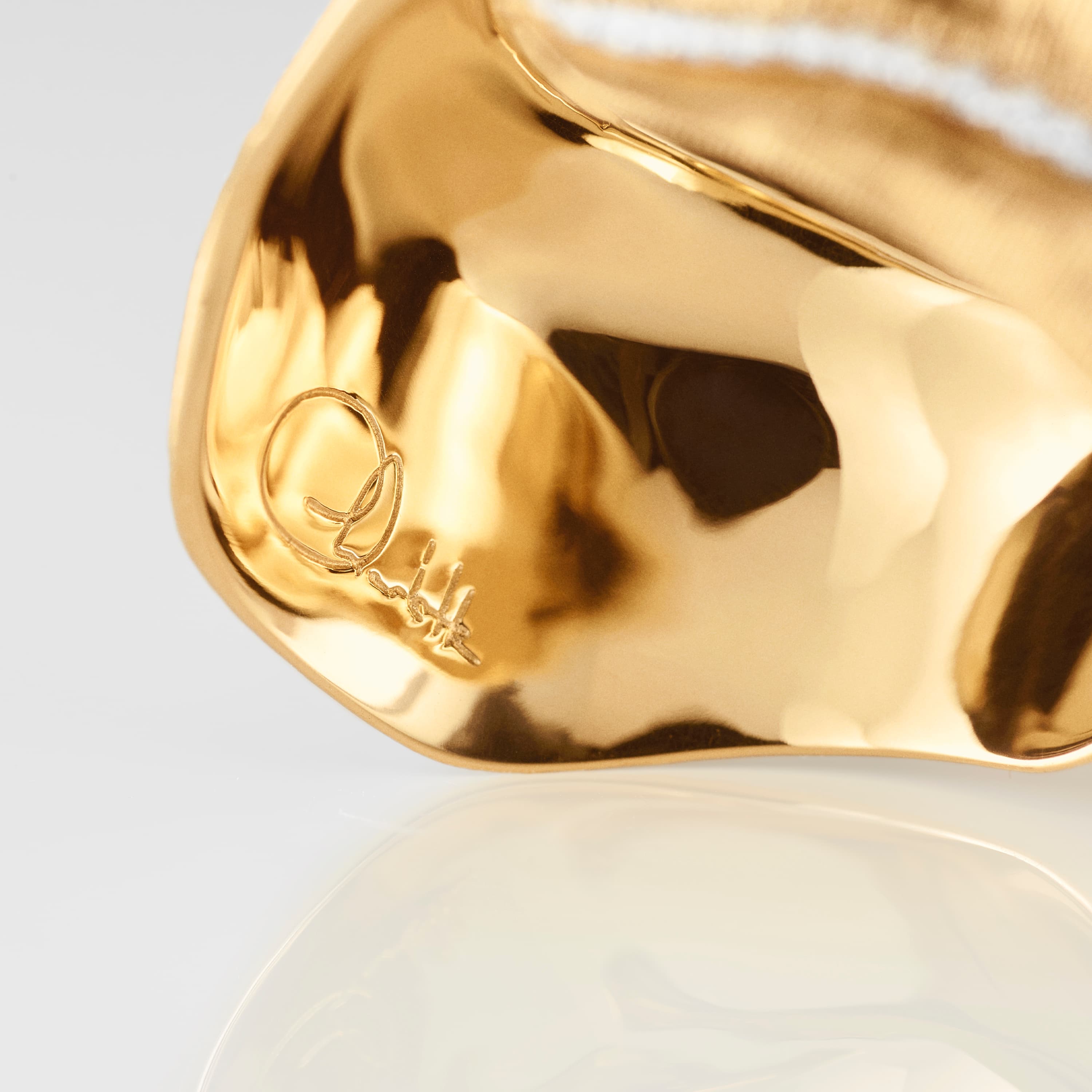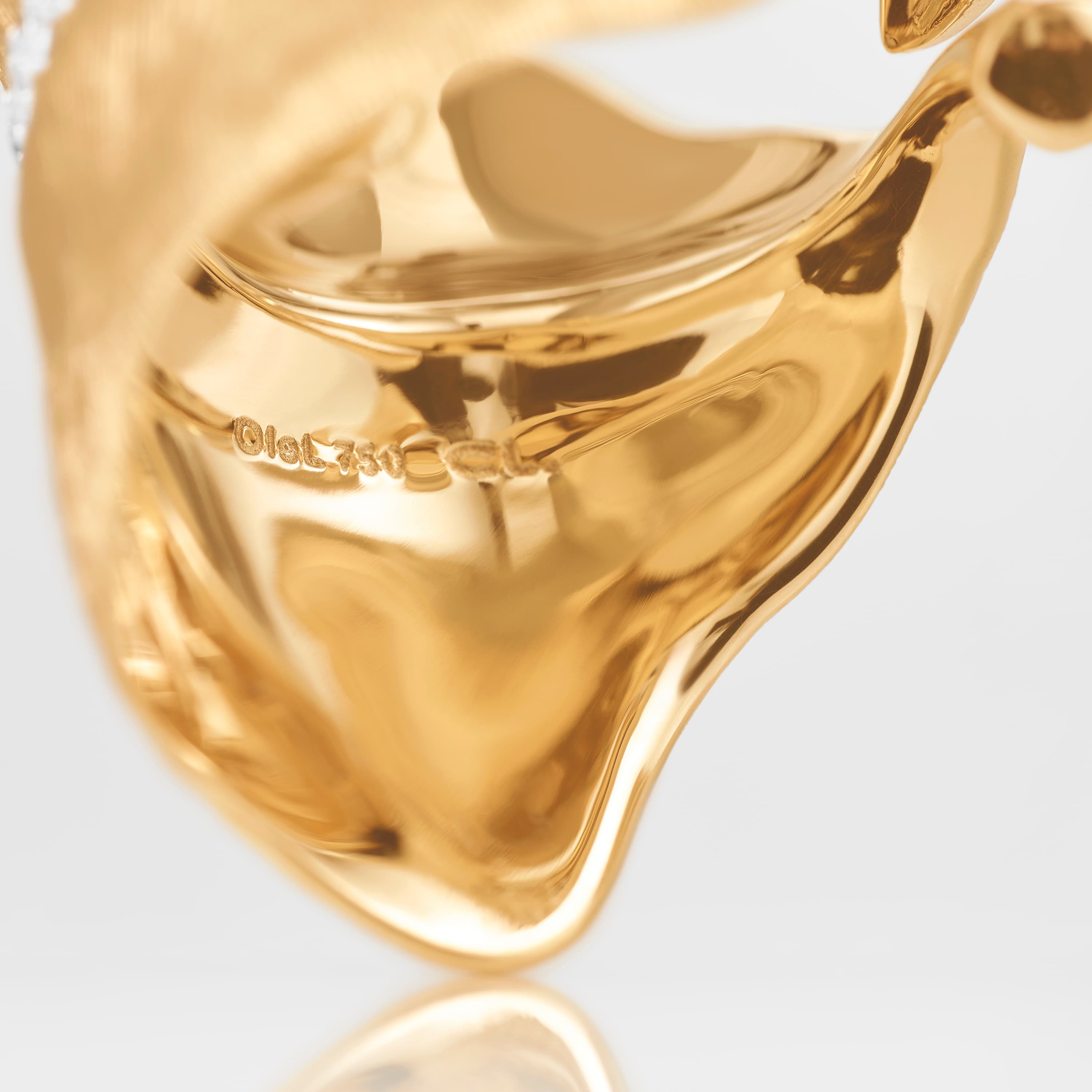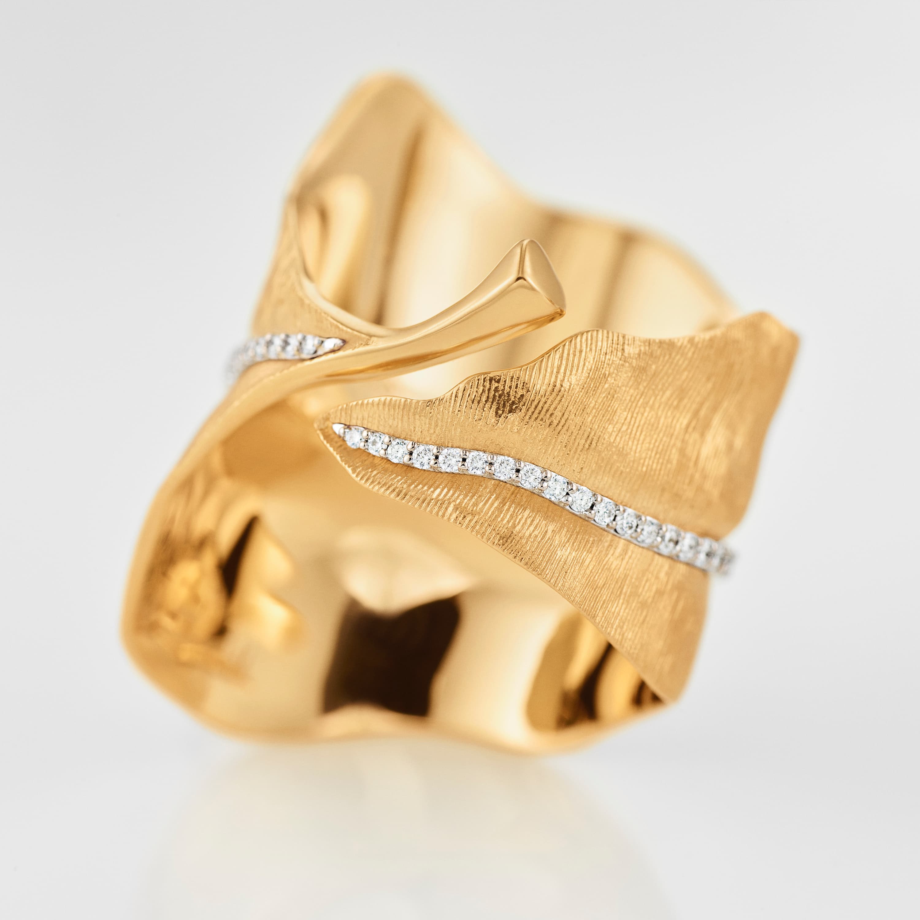Designed by Charlotte Lynggaard, the Leaves ring is crafted from 18 karat gold set with 48 diamonds. Using several different techniques and tools, master goldsmiths sculpt and finish the surfaces of the ring by hand. Part of the Leaves Collection. Leaves Ring large 18 karat yellow gold 48 diam. totally 0,45 ct TW.VS