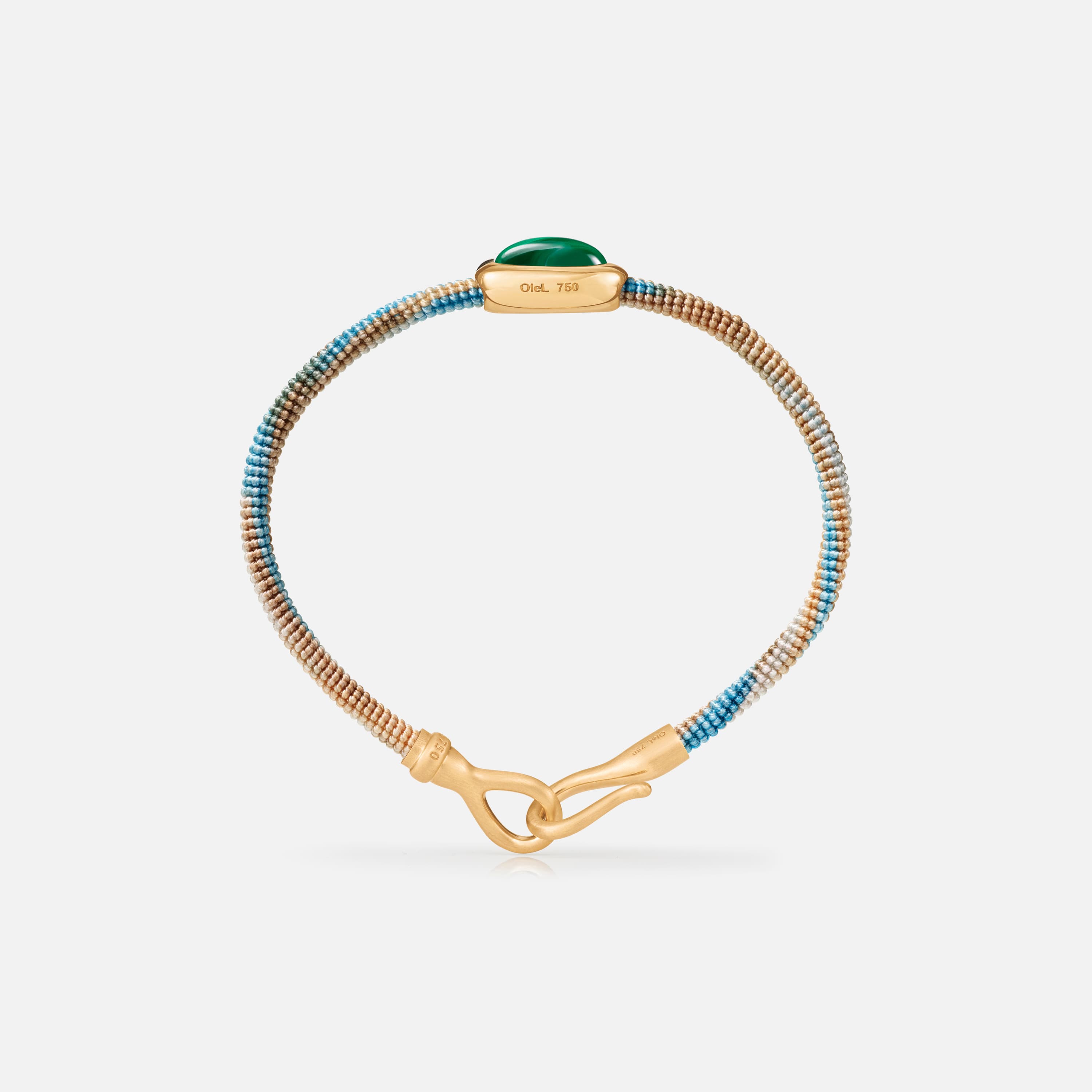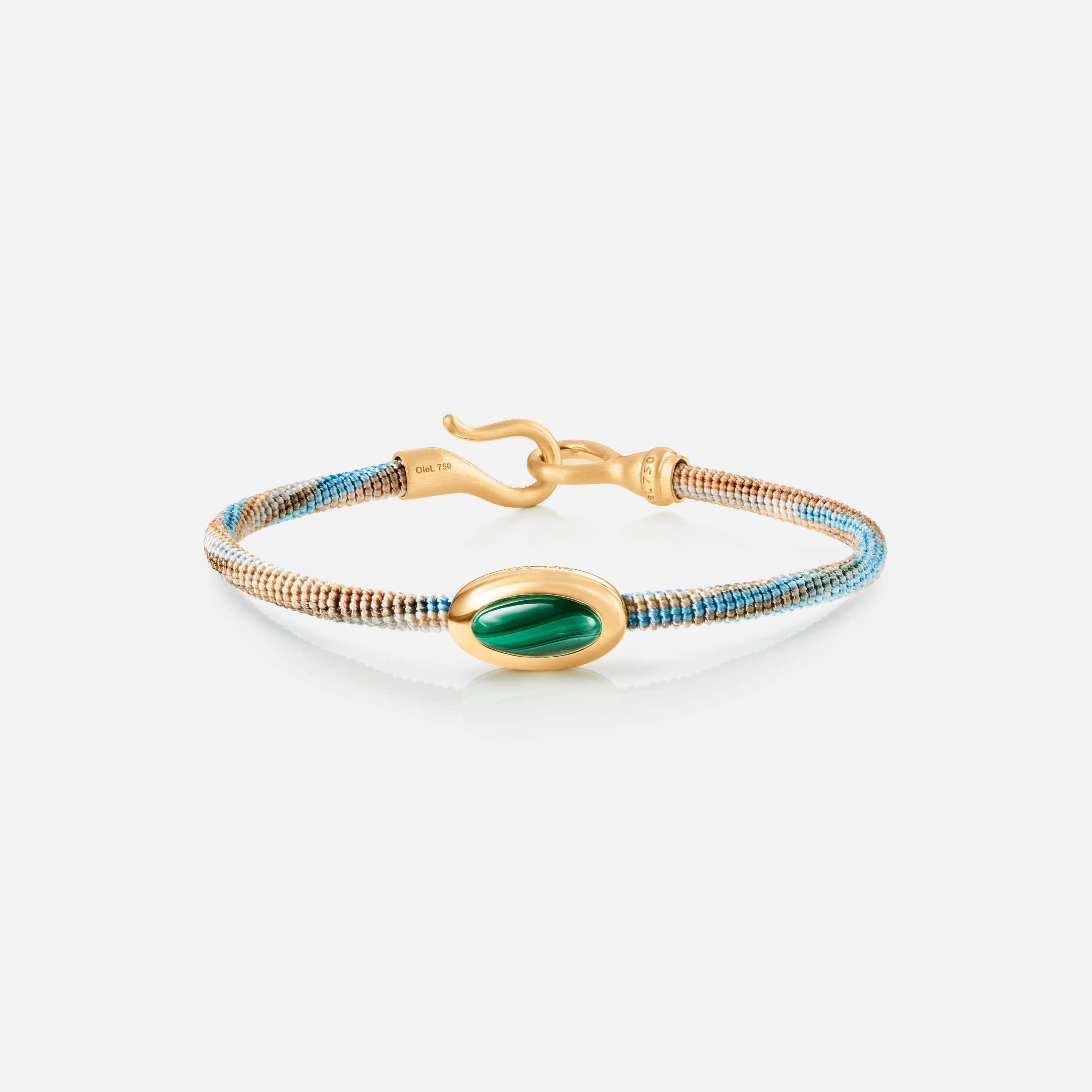 Designed by Charlotte Lynggaard, the Life Cornflower bracelet with malachite charm is hand-knotted using 7 strings, each one woven from 6 hand-dyed threads. The brand-stamped hook fastening is hand-crafted by master goldsmiths from 18 karat, brushed yellow gold. The 12x6x4 mm malachite is set in 18 karat, polished yellow gold. The bracelet measures 4,5 mm in width and is available in lengths of 15, 16, 17, 18, 19, 20, or 21 cm. Part of the Life Collection.