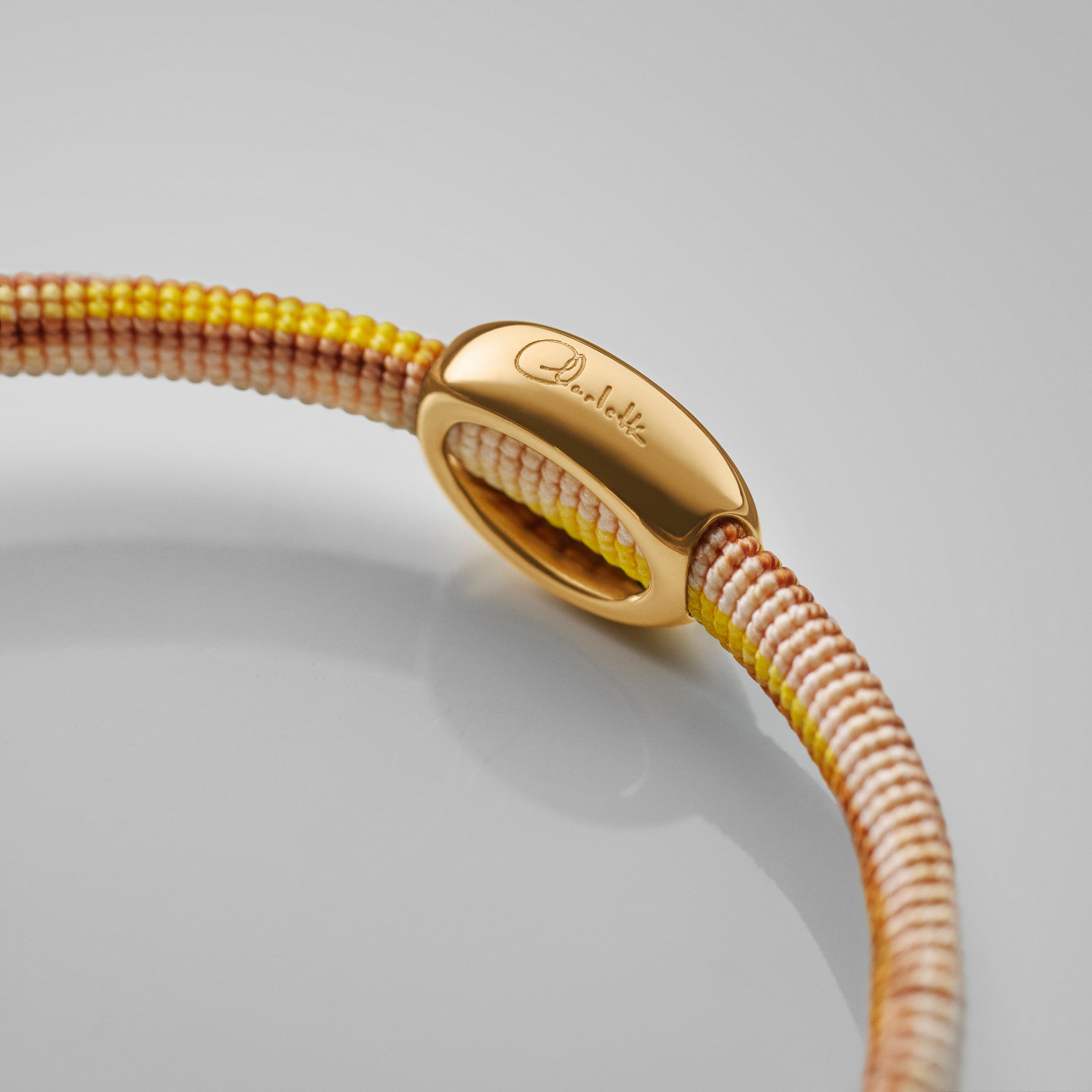 Designed by Charlotte Lynggaard, the Life Golden bracelet with evil eye charm is hand-knotted using 11 strings, each one woven from 6 hand-dyed threads. The brand-stamped hook fastening is hand-crafted by master goldsmiths from 18 karat, brushed yellow gold. The 13x9x2,5 mm evil eye and is set in 18 karat, polished yellow gold. The bracelet measures 6 mm in width and is available in lengths of 15, 16, 17, 18, 19, 20, or 21 cm. Part of the Life Collection.