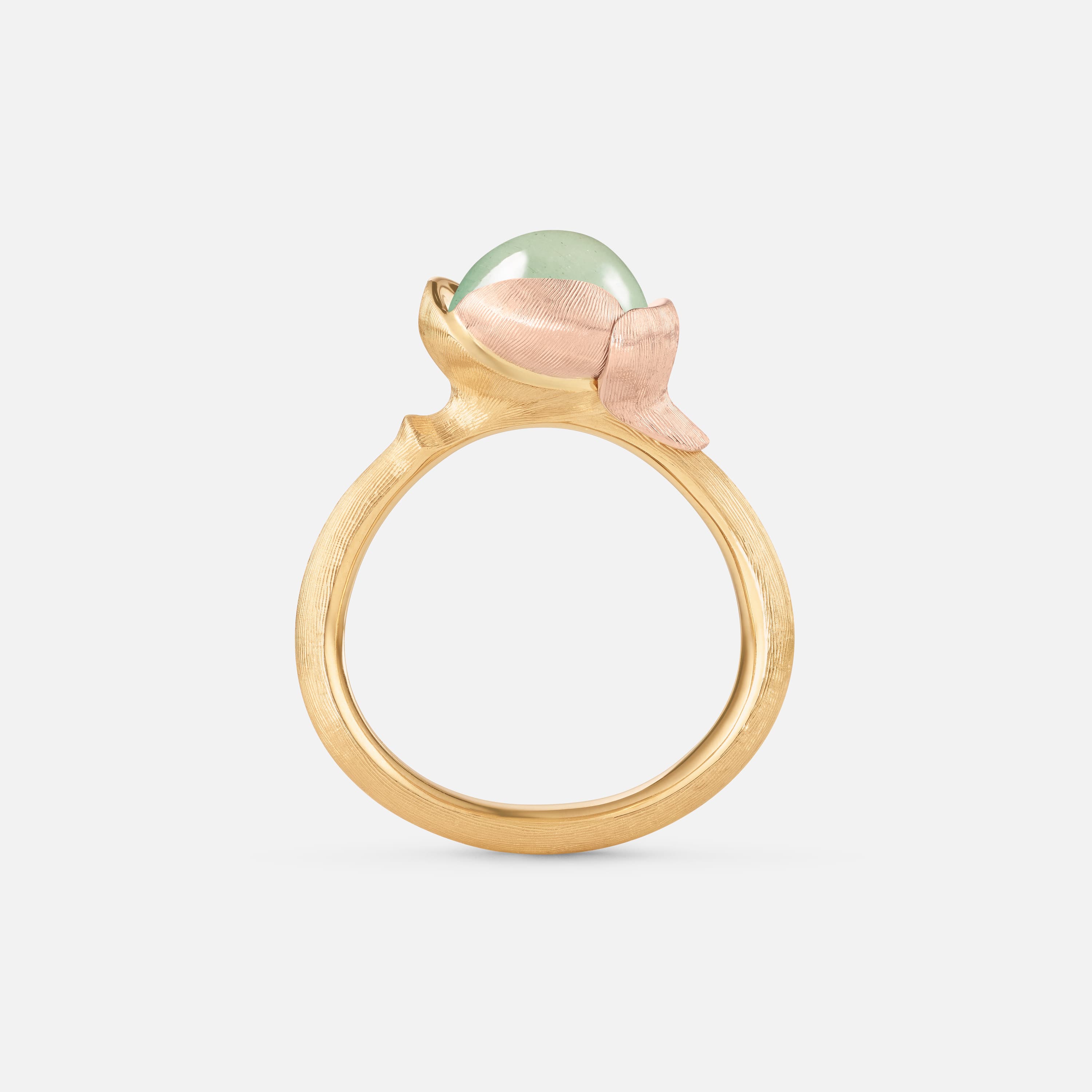 Designed by Charlotte Lynggaard, the Lotus ring, size 1, is crafted from 18 karat yellow and rose gold with an aquamarine cabochon. Handcrafted by master goldsmiths, the visible gold surfaces are hand-satinised, whilst the inside of the ring has a polished finish. Part of the Lotus Collection. Please note: As gemstones are natural materials, each stone is absolutely unique. They will vary in colour and have individual, unique inclusions and features. Web-images of stones are only representatives of the unique stone you will receive when ordering the product, not the exact stone.