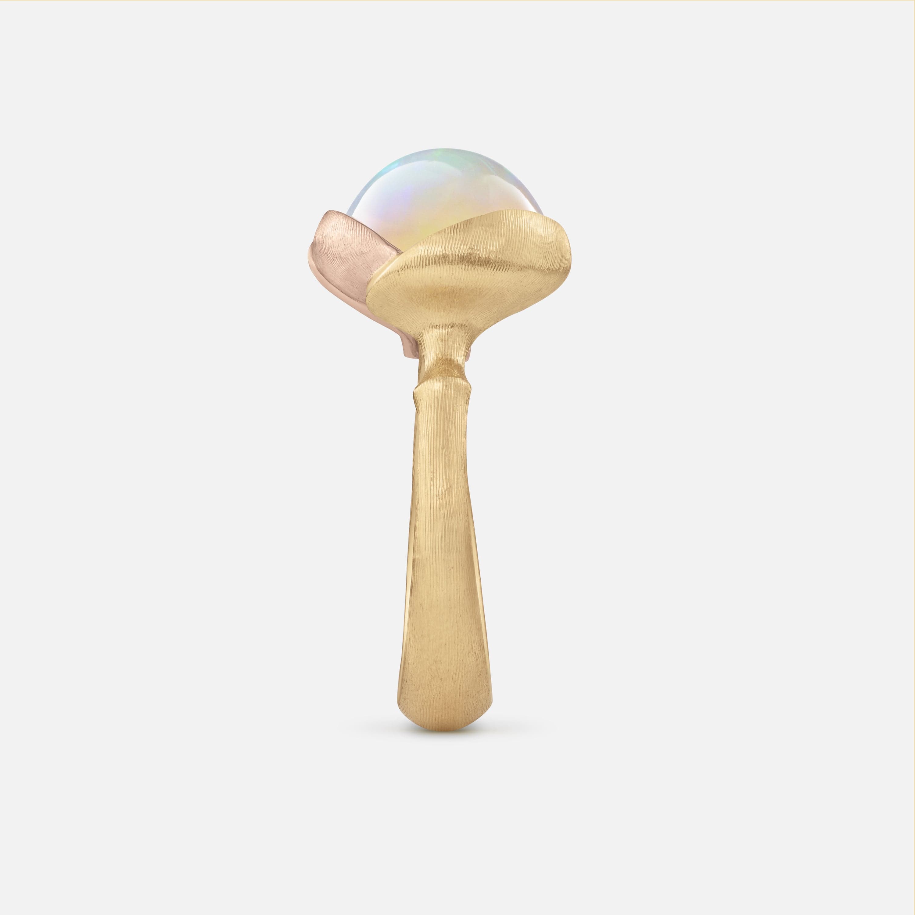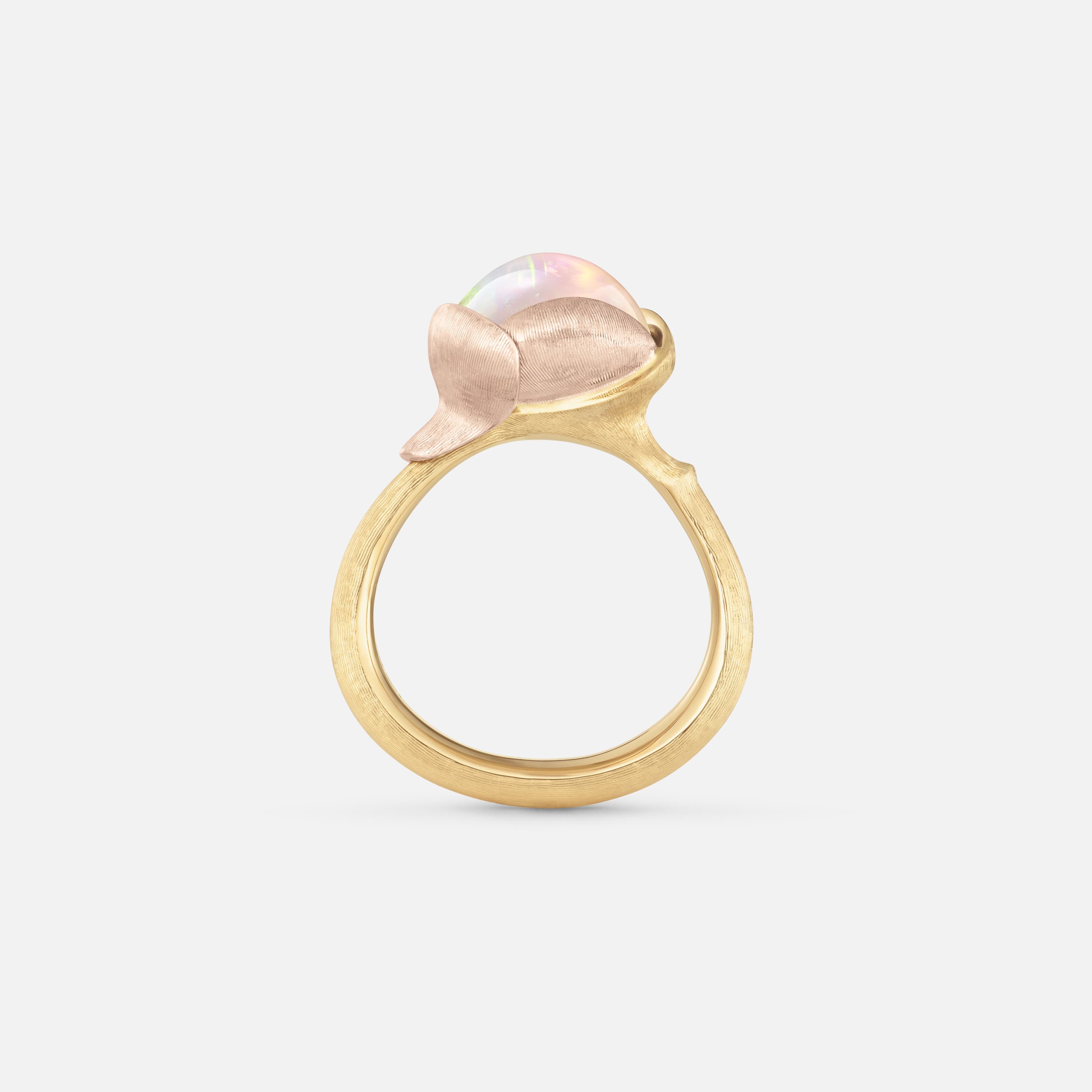 Designed by Charlotte Lynggaard, the Lotus ring, size 2, is crafted from 18 karat yellow and rose gold with an opal cabochon. Handcrafted by master goldsmiths, the visible gold surfaces are hand-satinised, whilst the inside of the ring has a polished finish. Part of the Lotus Collection. Please note: As gemstones are natural materials, each stone is absolutely unique. They will vary in colour and have individual, unique inclusions and features. Web-images of stones are only representatives of the unique stone you will receive when ordering the product, not the exact stone.