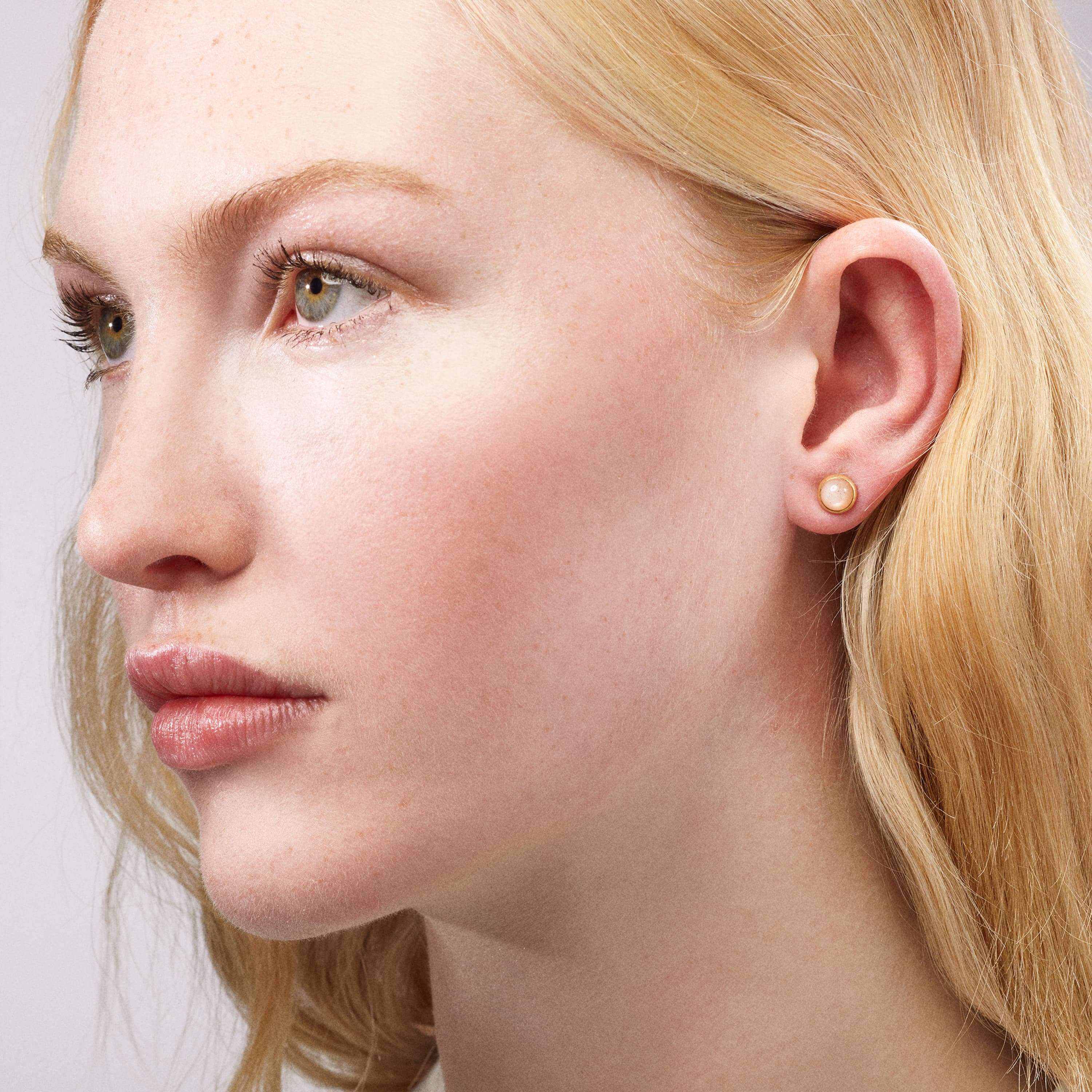 Designed by Charlotte Lynggaard, the Lotus stud earrings are crafted from 18 karat yellow gold and blush moonstone cabochons. Handcrafted by master goldsmiths, the visible gold surfaces are hand-satinised, whilst the backs, that sit against the earlobes, have a polished finish. Diameter: 7 mm. Sold as a pair. Part of the Lotus Collection.
