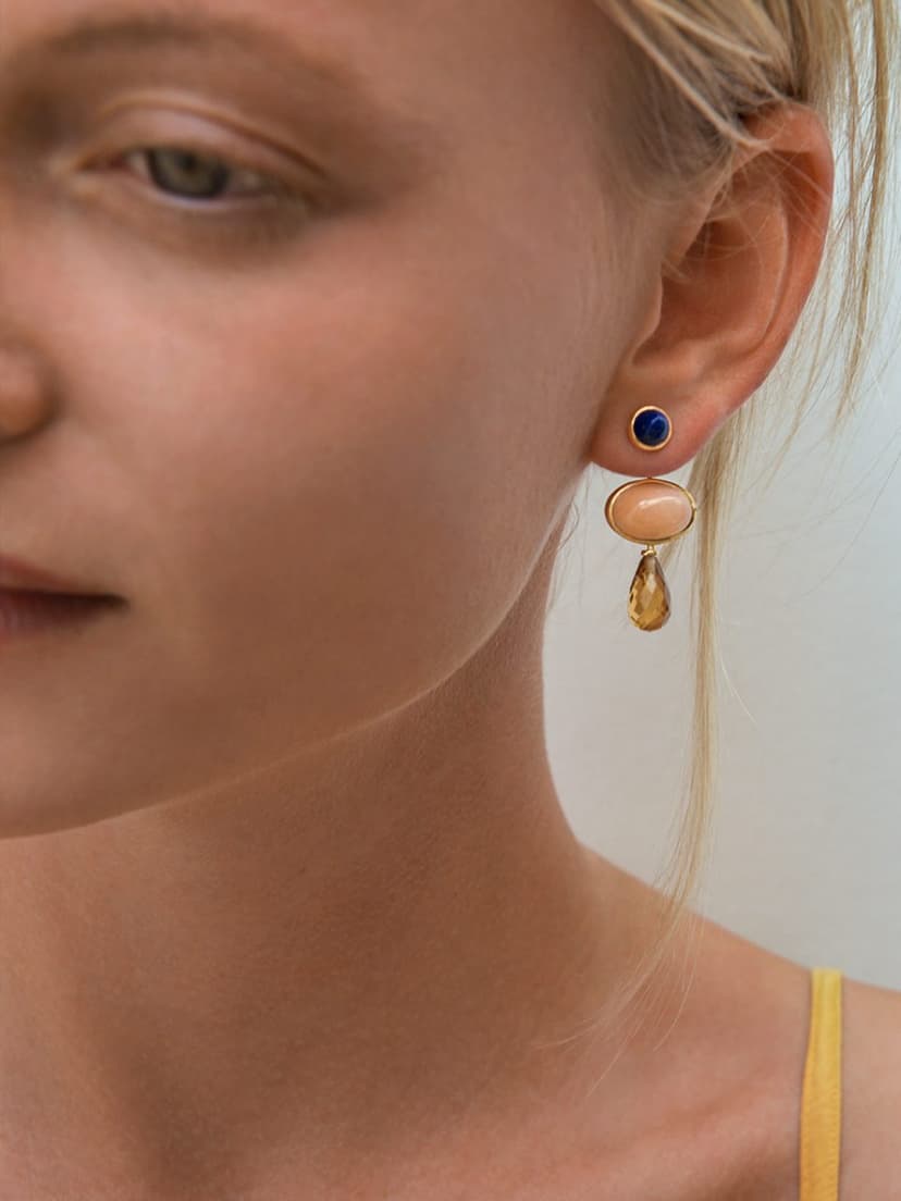 Designed by Charlotte Lynggaard, the Lotus stud earrings are crafted from 18 karat yellow gold and lapis lazuli cabochons. Handcrafted by master goldsmiths, the visible gold surfaces are hand-satinised, whilst the backs, that sit against the earlobes, have a polished finish. Diameter: 7 mm. Sold as a pair. Part of the Lotus Collection.