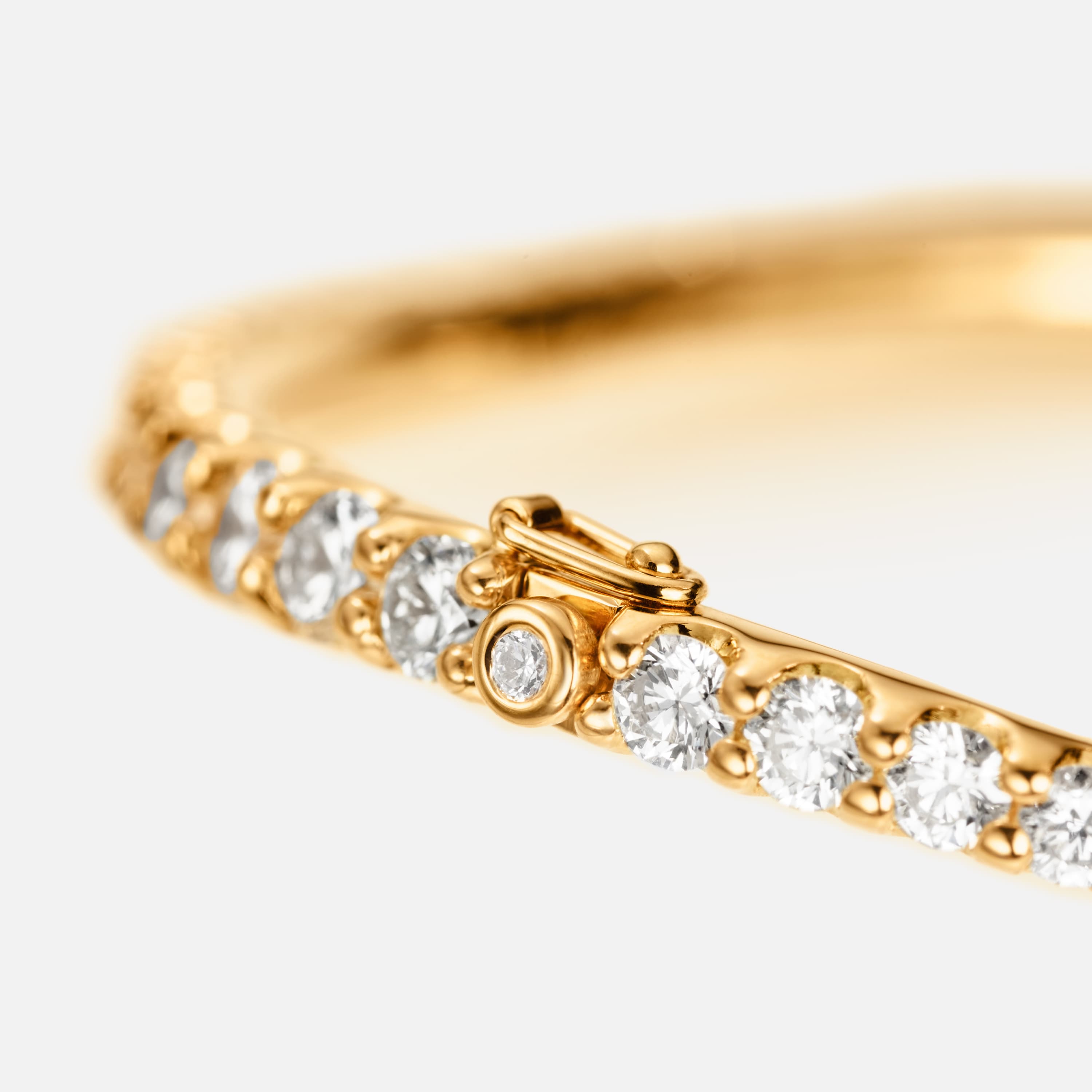 Designed by Charlotte Lynggaard, this Love Bands bangle curved wide is crafted in 18 karat yellow gold and hand-set with 59 diamonds of varying sizes, totalling 7.24 carat TW G VS-1. Opens with a descreet charnier clasp. Handcrafted by master goldsmiths. The bangle has an inner circumference of 18 cm. Part of The Love Bands Collection.