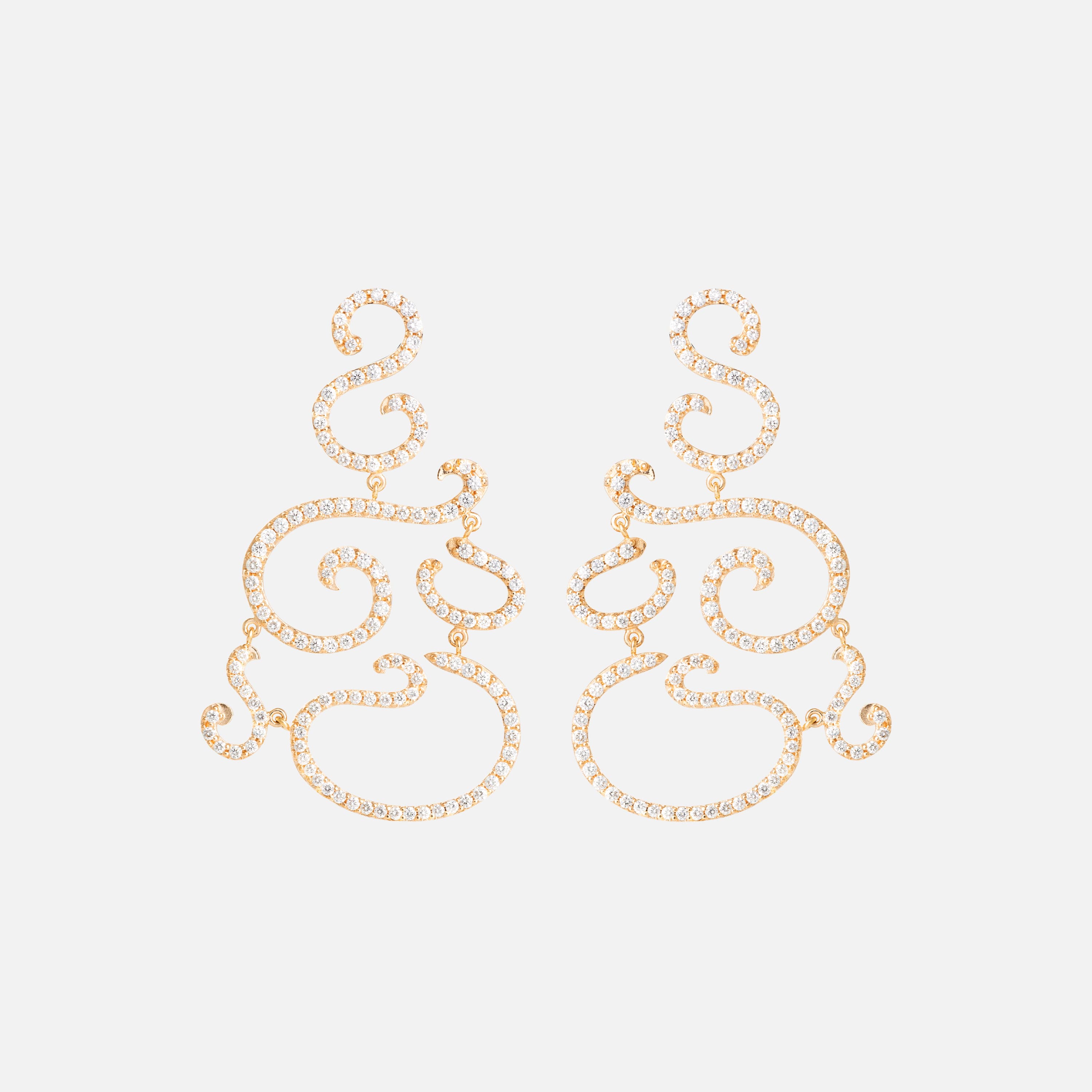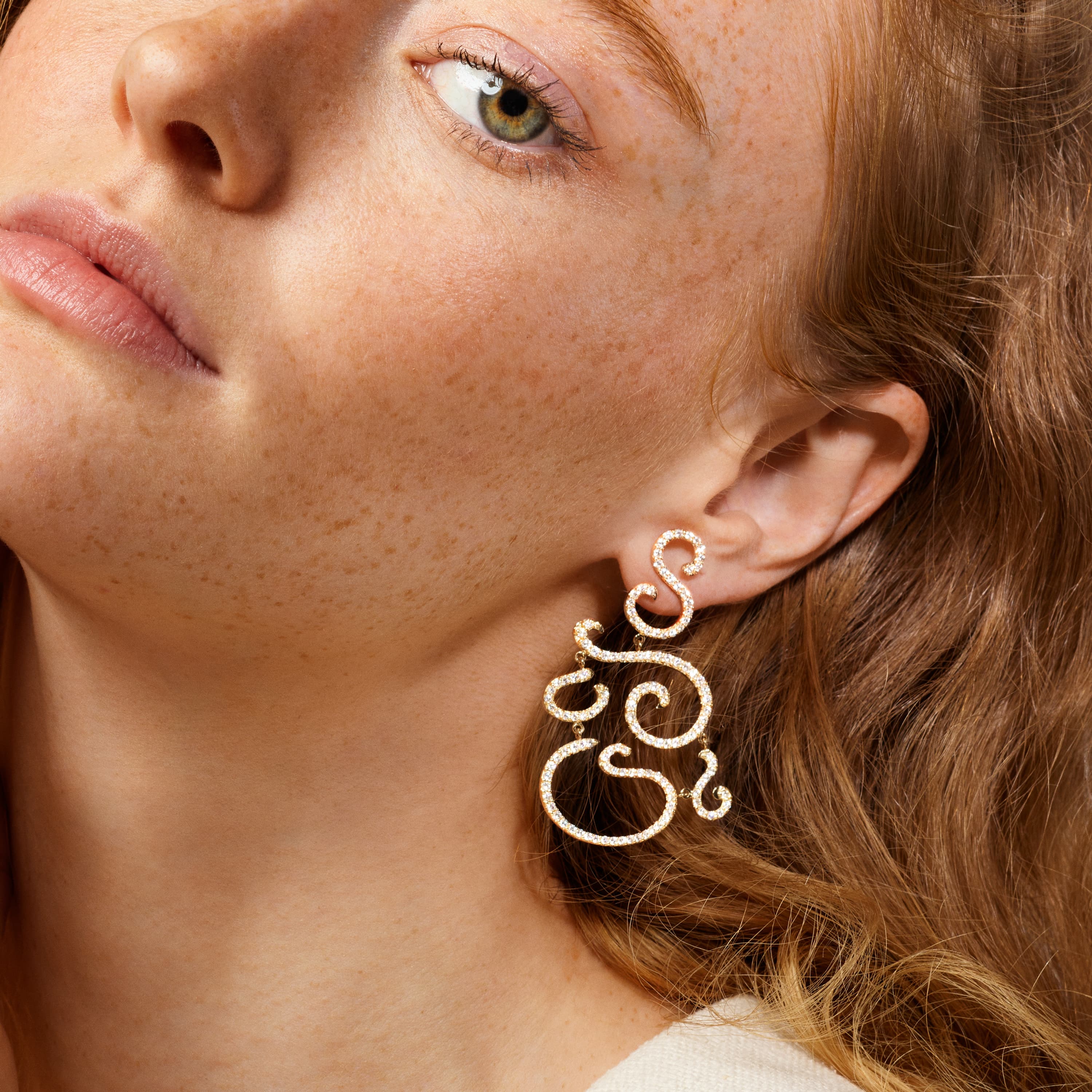 Designed by Charlotte Lynggaard, the Love Bands Chandelier earrings are crafted from 18 karat yellow gold with 268 hand-set diamonds of varying sizes totalling 4 carat. TW. VS. Handcrafted by master goldsmiths. Sold as a pair. Part of the Love Bands Collection.