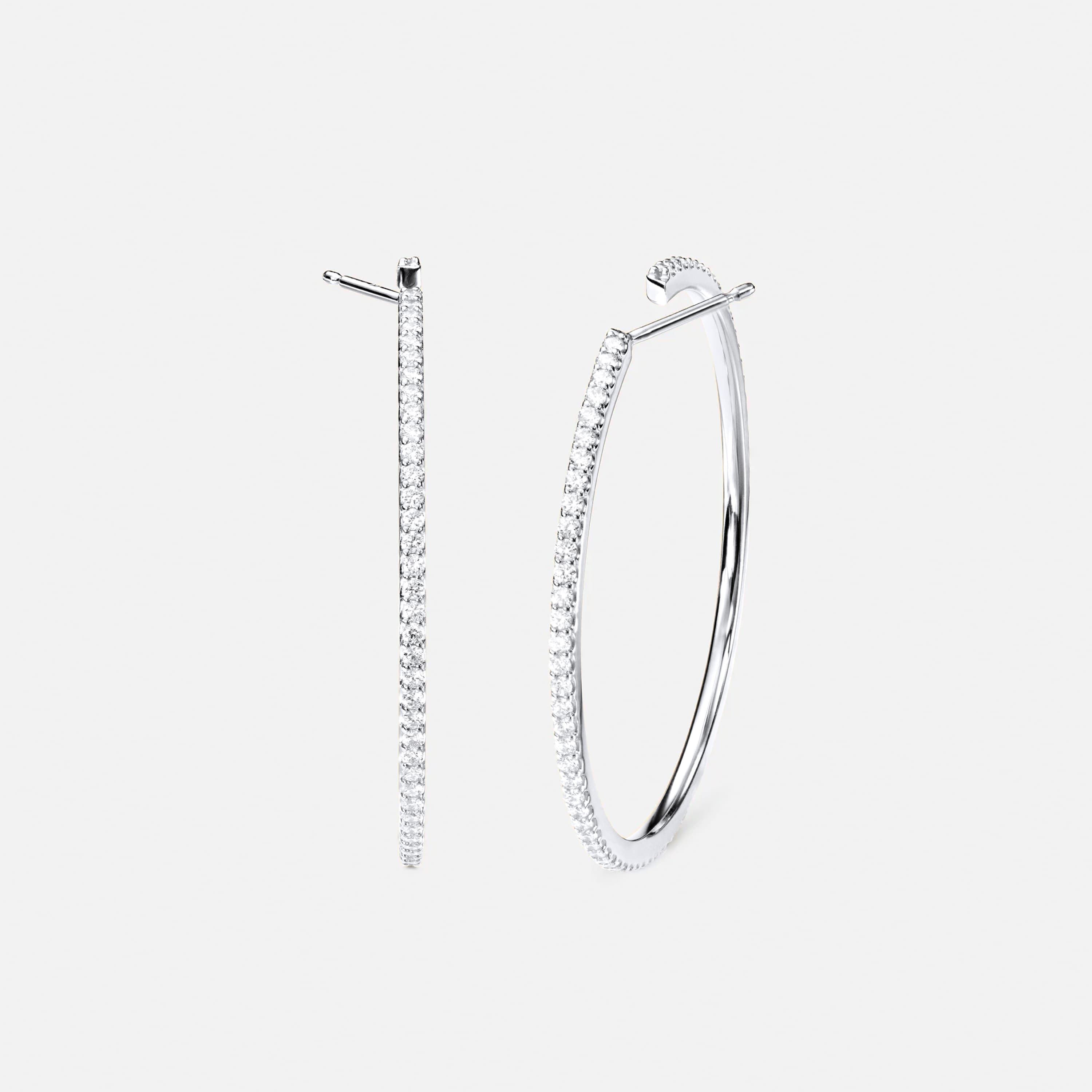 Designed by Charlotte Lynggaard, the Love Bands straight Creol earrings giga are crafted from 18 karat white gold with 160 hand-set diamonds totalling 1.60 carat. TW. VS. The visible gold surfaces of the 38 mm diameter earrings are hand-polished by master goldsmiths. Sold as a pair. Part of the Love Bands Collection.