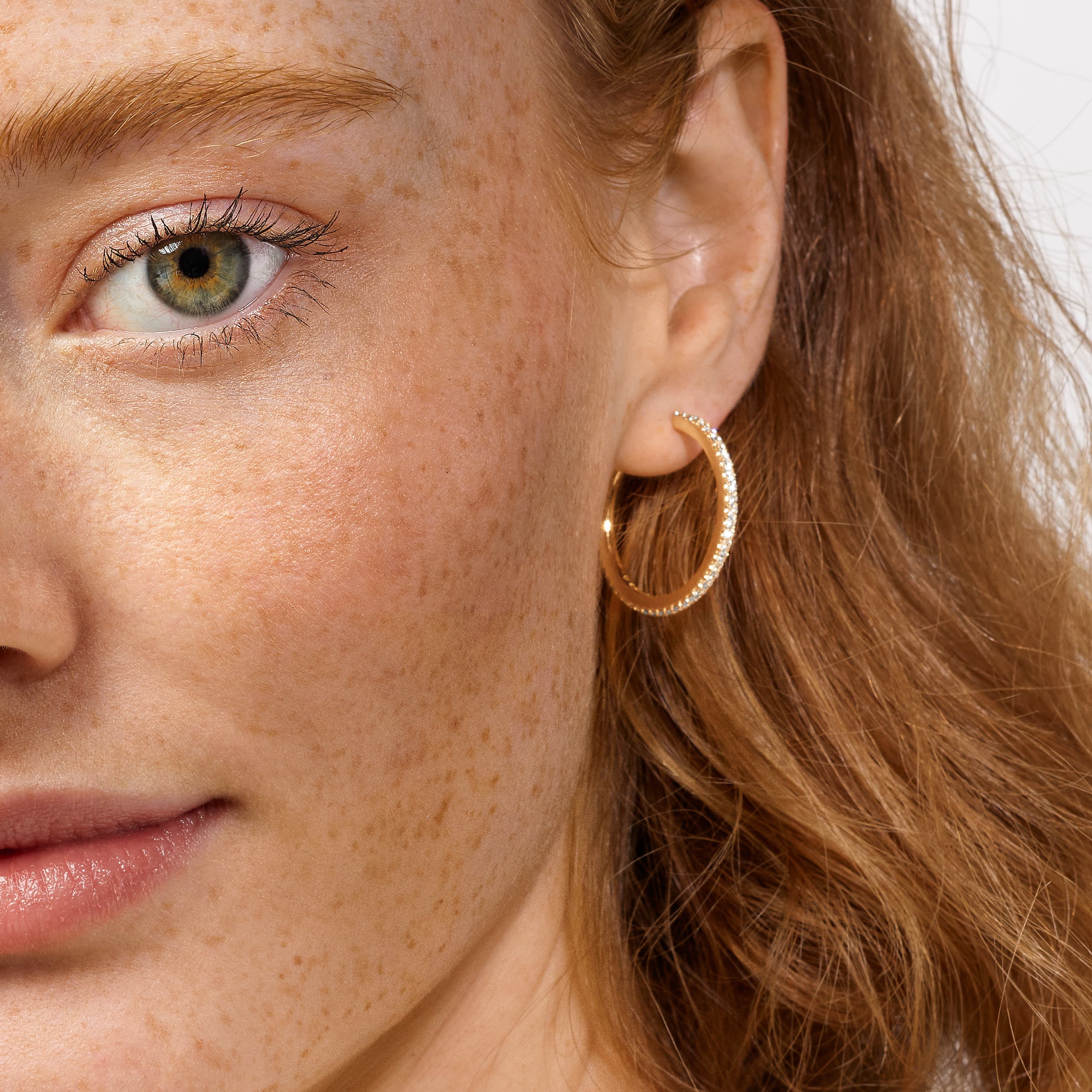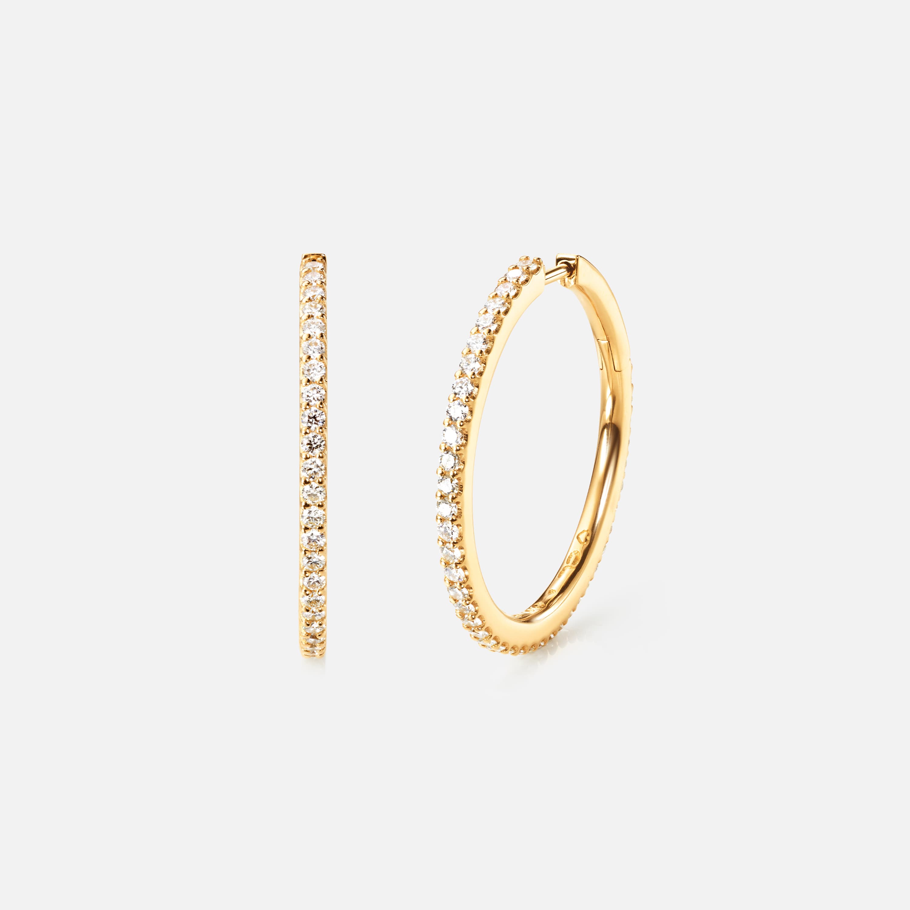 Designed by Charlotte Lynggaard, the Love Bands straight Creol earrings large are crafted from 18 karat yellow gold with 82 hand-set diamonds totalling 0,82 carat. TW. VS. The visible gold surfaces of the 26 mm diameter earrings are hand-polished by master goldsmiths. Sold as a pair. Part of the Love Bands Collection.