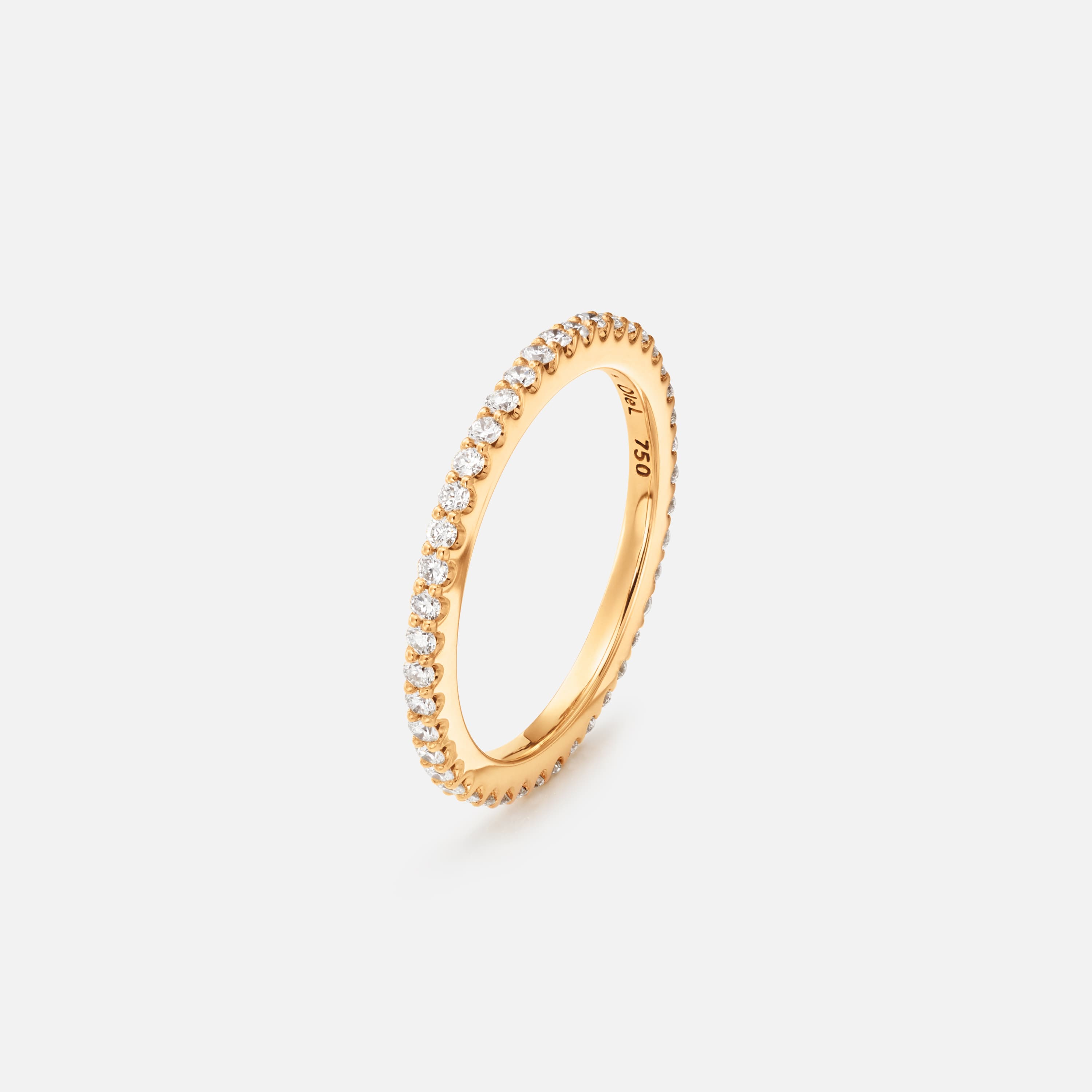 Designed by Charlotte Lynggaard, the Love Bands straight ring is crafted from 18 karat yellow gold with 40-47 diamonds, depending on ring size, totalling 0.40-0.47 carat TW. VS. The visible gold surfaces are hand-polished by master goldsmiths. Part of the Love Bands Collection.