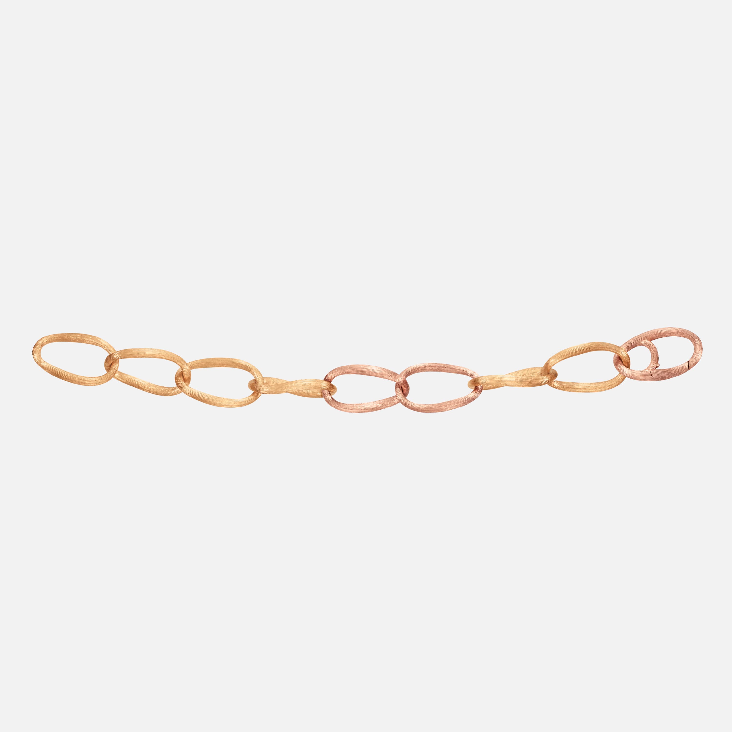 Designed by Charlotte Lynggaard, the Love bracelet heavy is crafted from 18 karat yellow and rose gold. The total length is 18 cm, and the 9 individual links are of varying sizes. Master goldsmiths hand-satinise the gold surfaces. Part of the Love Collection.