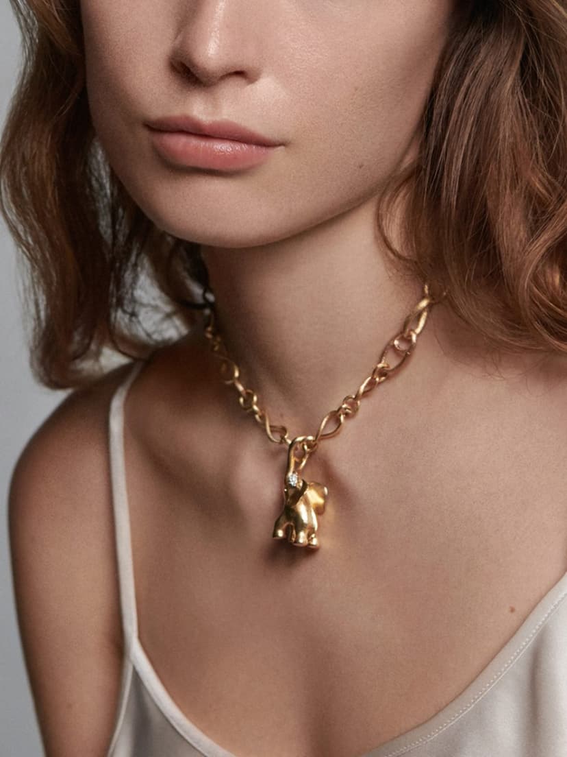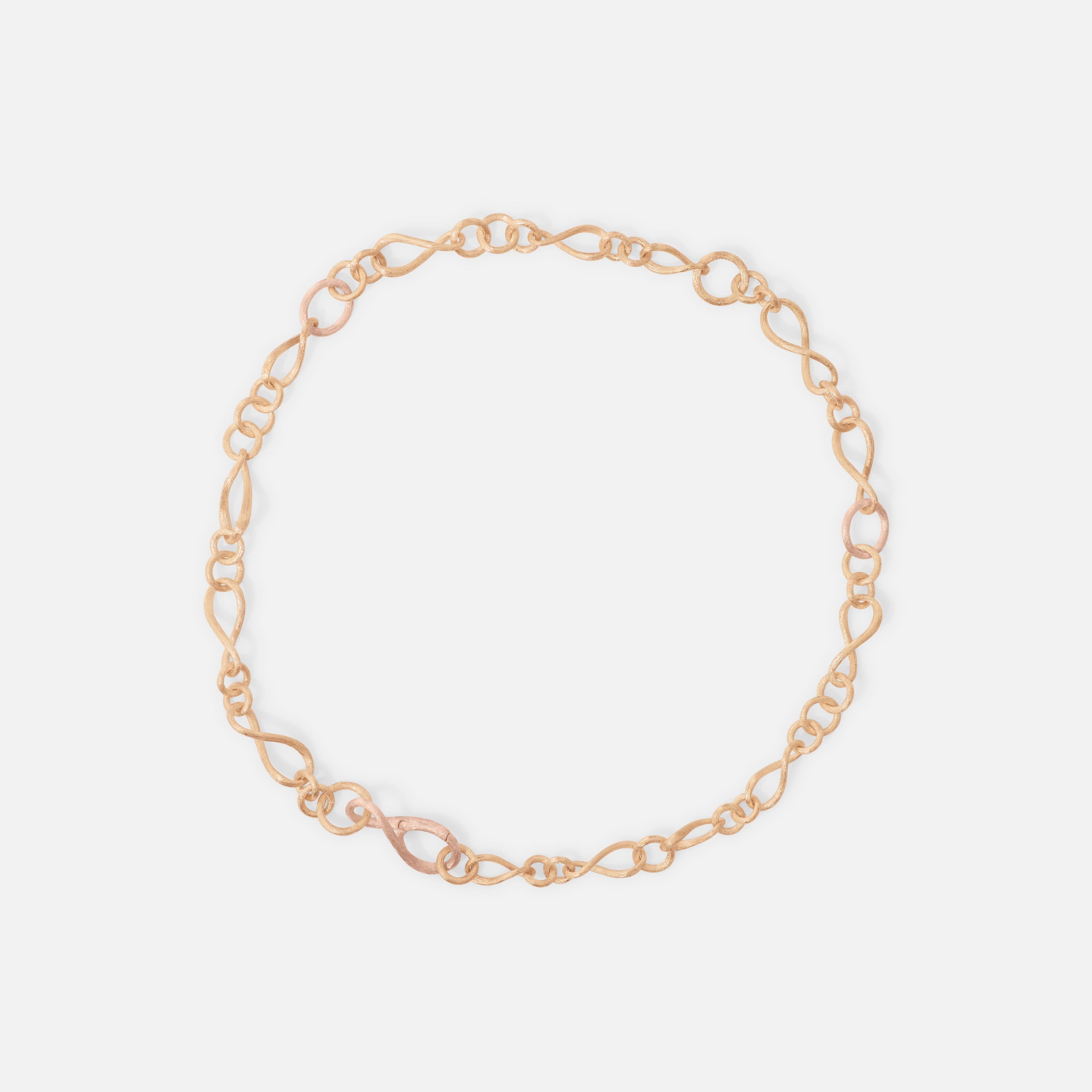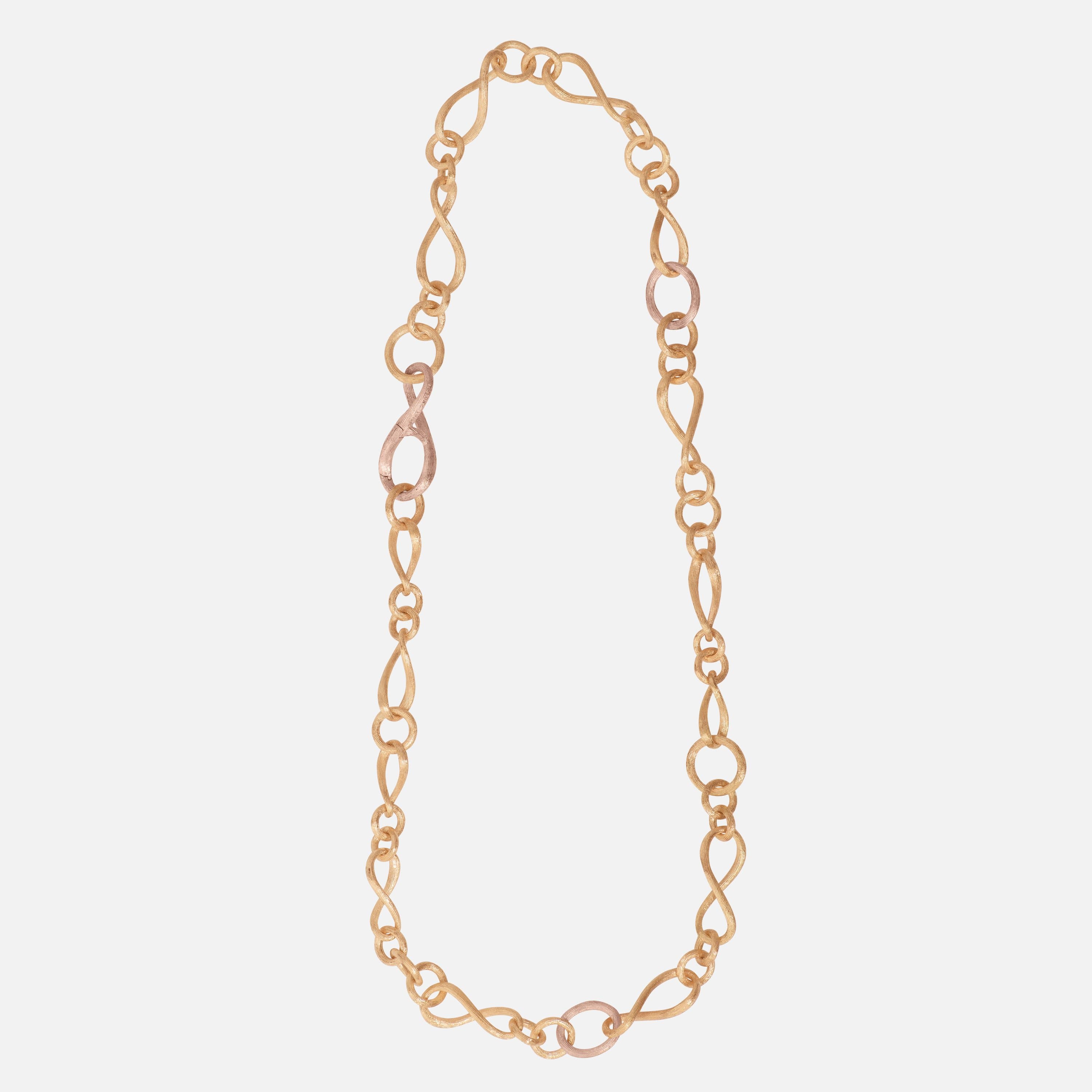 Designed by Charlotte Lynggaard, the Love collier small is crafted from 18 karat yellow and rose gold. The total length is 45 cm, and the individual links are of varying sizes. Master goldsmiths handsatinise the gold surfaces. Part of the Love Collection. Total length: 17.72 inches.