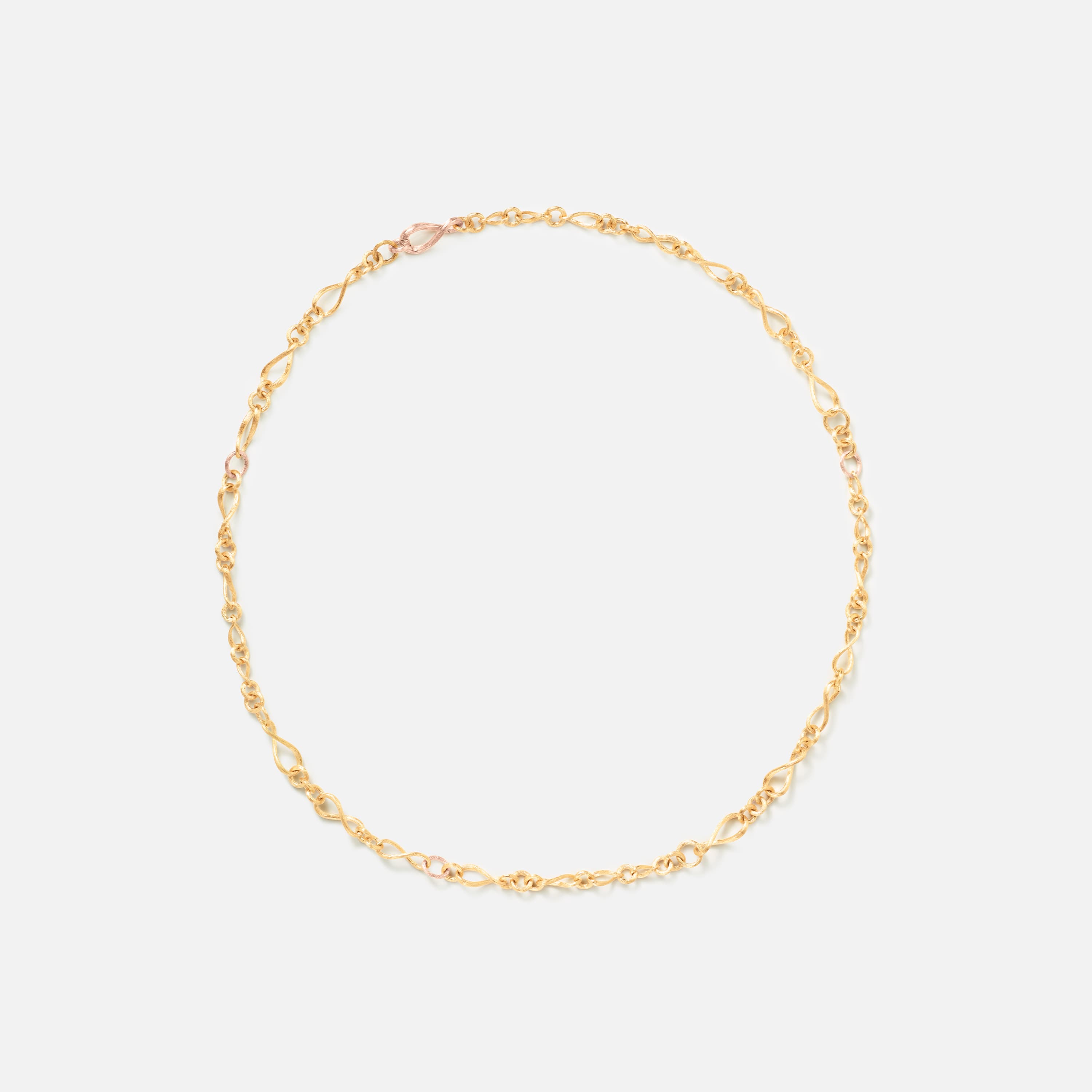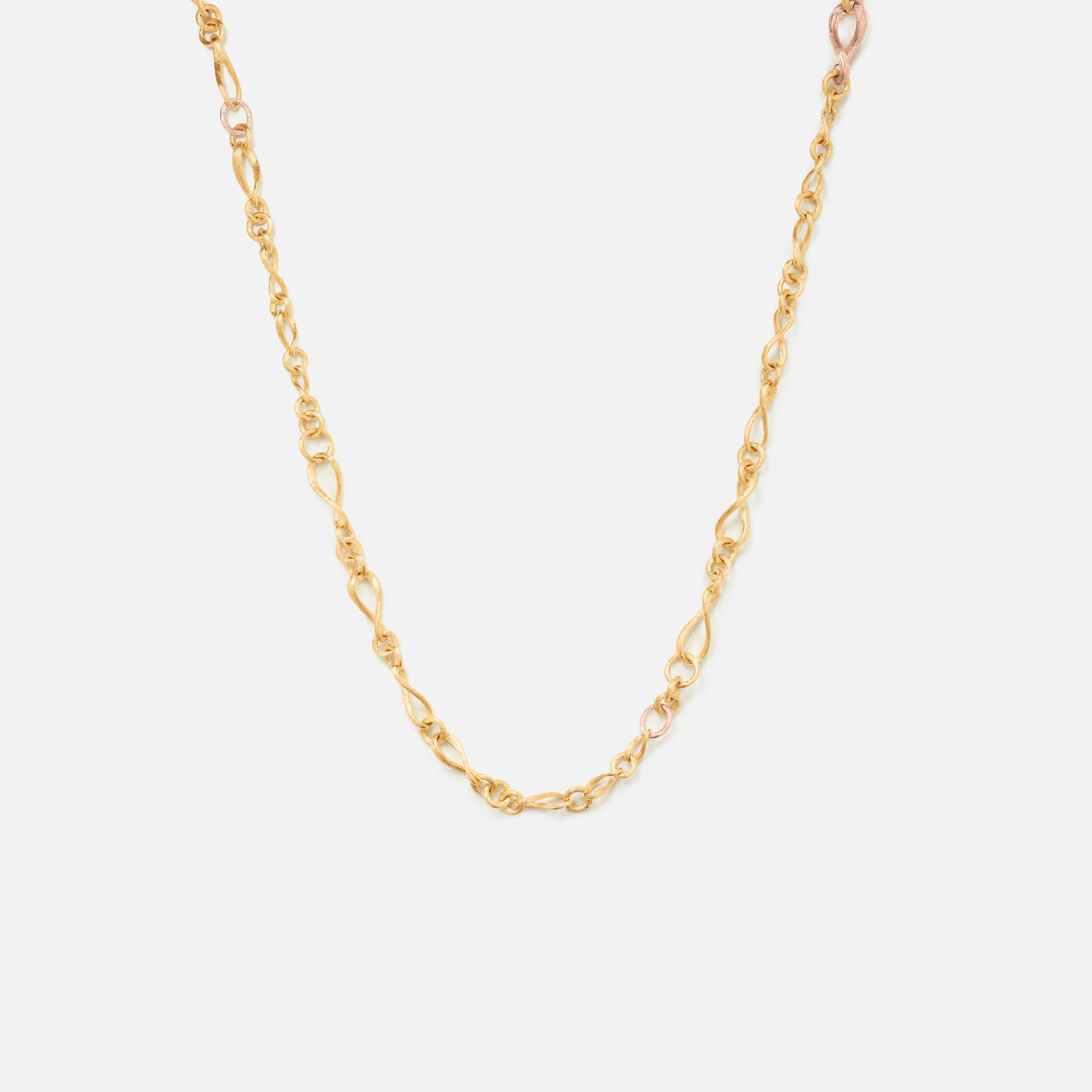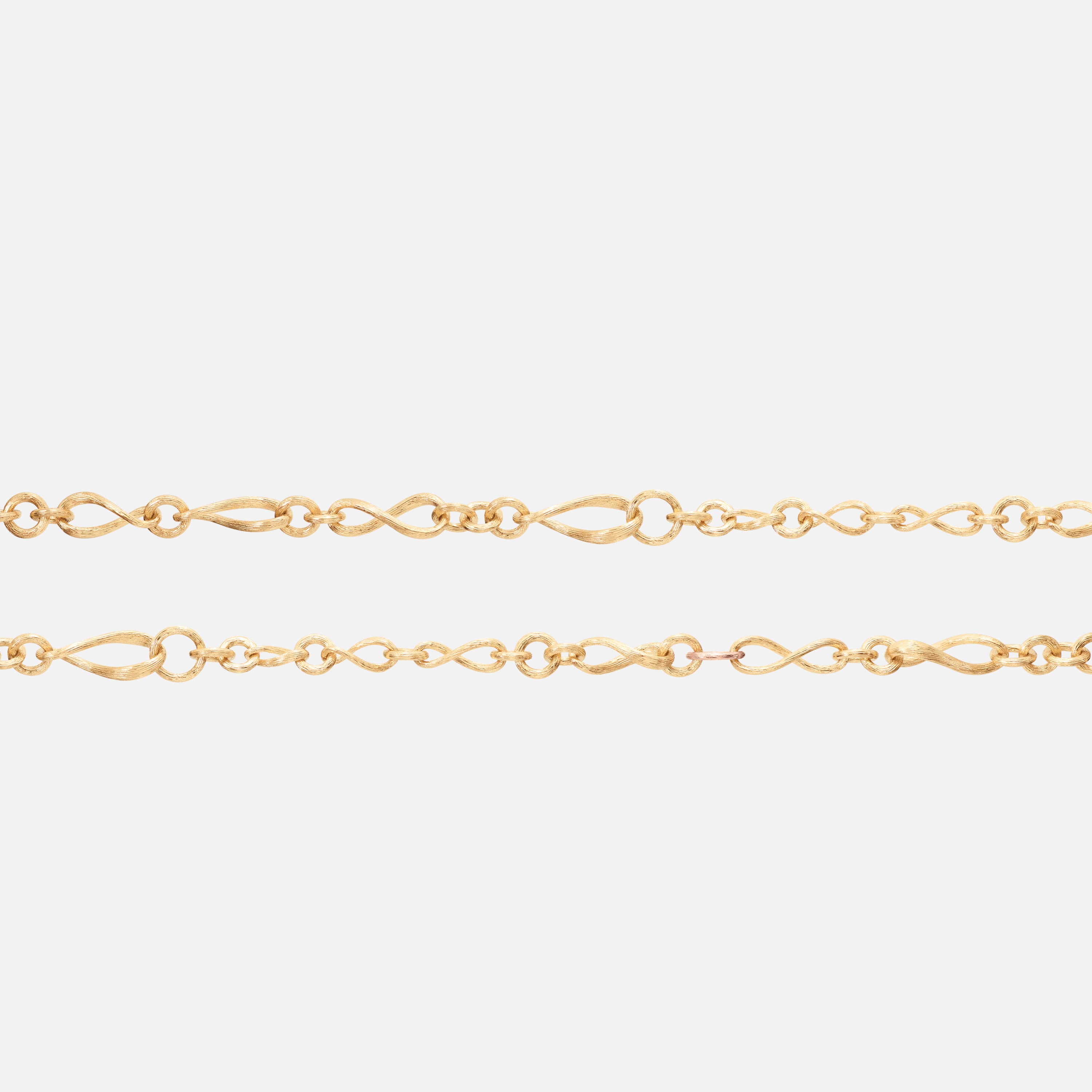 Designed by Charlotte Lynggaard, the Love collier mini is crafted from 18 karat yellow and rose gold. The total length is 80 cm, and the individual links are of varying sizes. Master goldsmiths hand-satinise the gold surfaces. Part of The Love Collection.