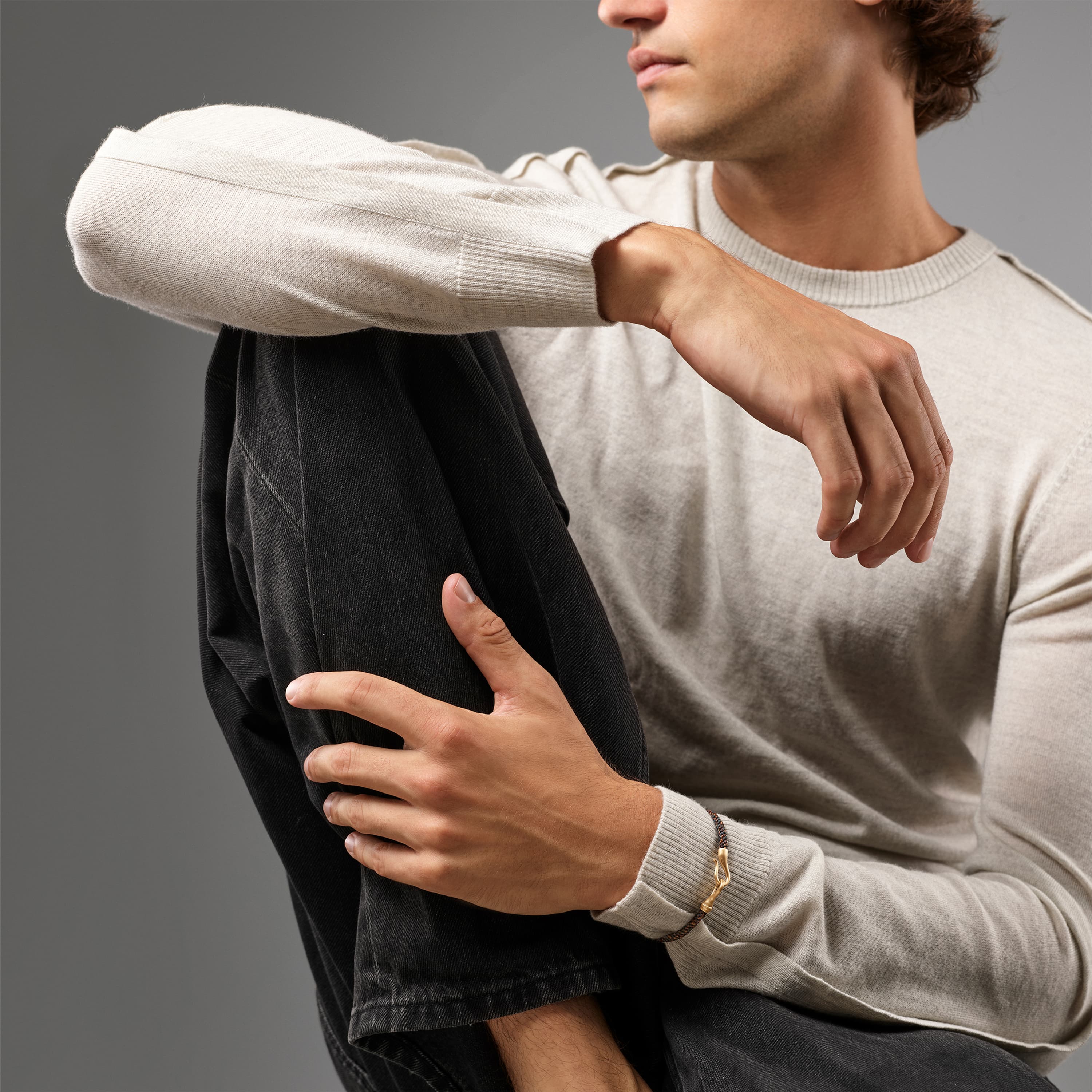 Designed by Charlotte Lynggaard, the Men's Life Maroon bracelet is hand-knotted using 8 strings, each one woven from 6 hand-dyed threads. The brand-stamped hook fastening is hand-crafted by master goldsmiths from 18 karat, hardened, brushed yellow gold. Available in 18, 19, 20 or 21 cm. Part of the Life Collection.