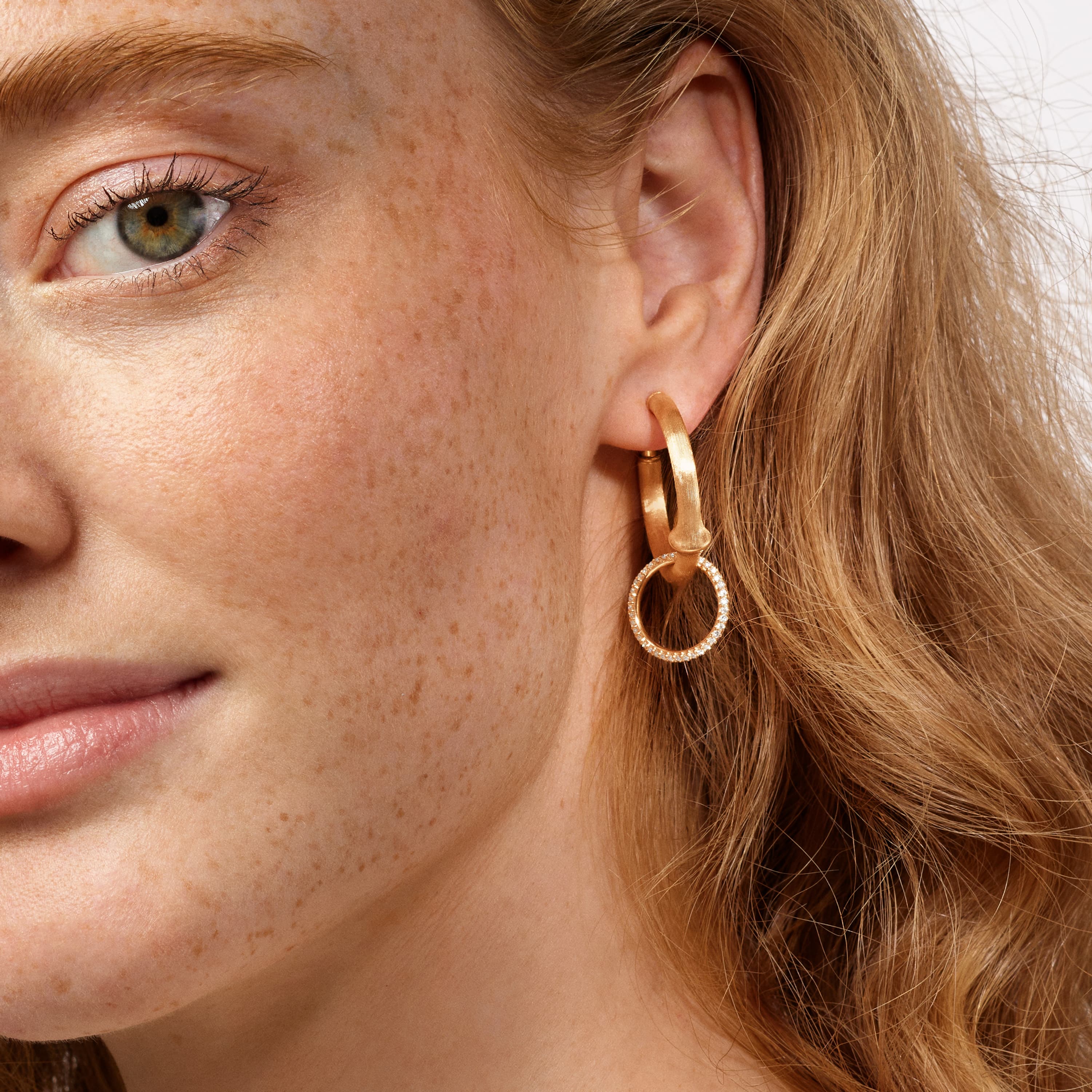 Designed by Charlotte Lynggaard, the Nature Creol earring pendant thin is crafted from 18 karat yellow gold with 78 hand-set pavé diamonds totalling 0,39 carat TW. VS. The gold surface is hand-satinised by master goldsmiths. Sold as a single piece. Part of the Nature Collection.