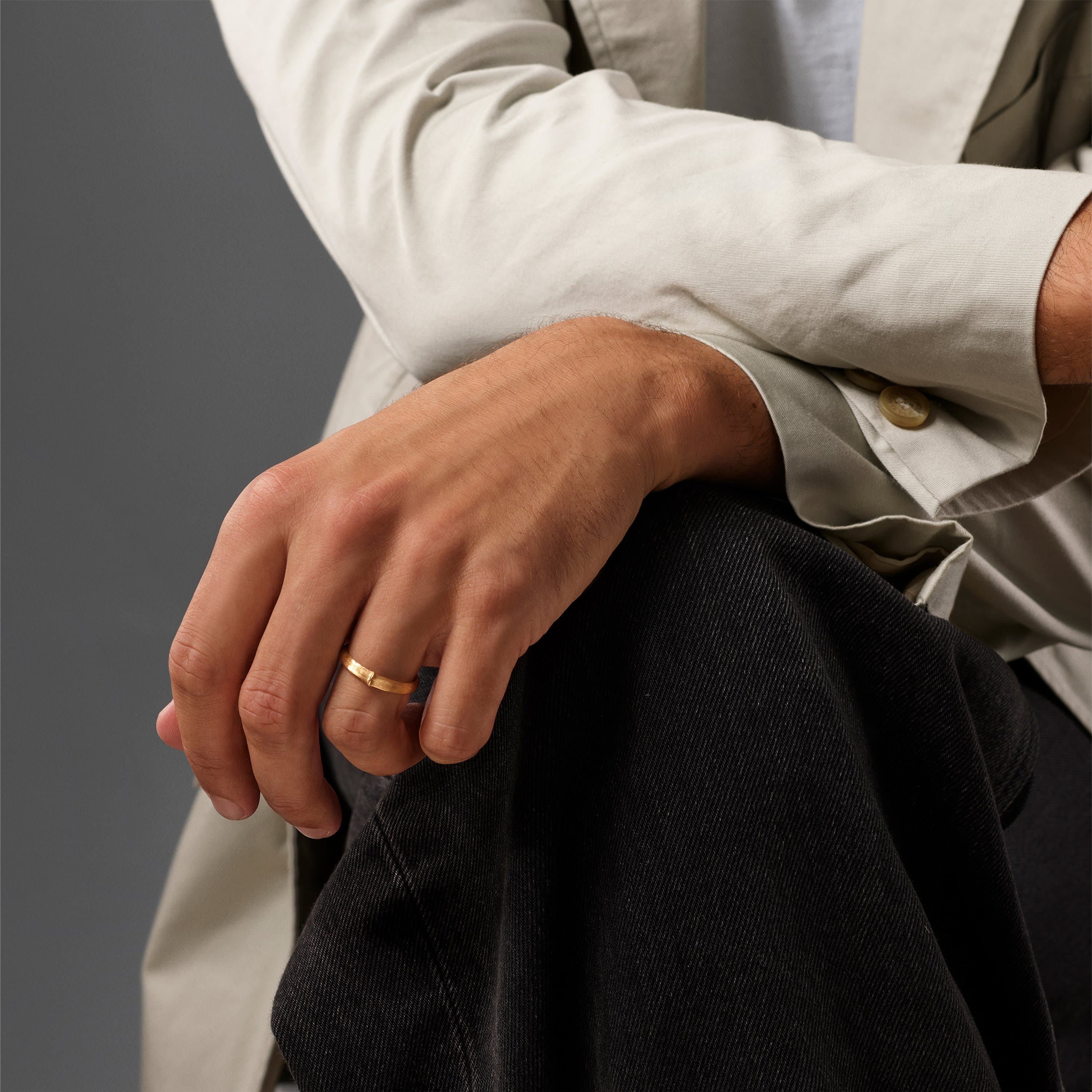Designed by Charlotte Lynggaard, the Nature ring small for men is hand-crafted from 18 karat yellow gold by master goldsmiths. The visible gold surfaces of the 3,5 mm wide ring are hand-satinised, whilst the inside has a polished finish. Part of the Nature Collection.