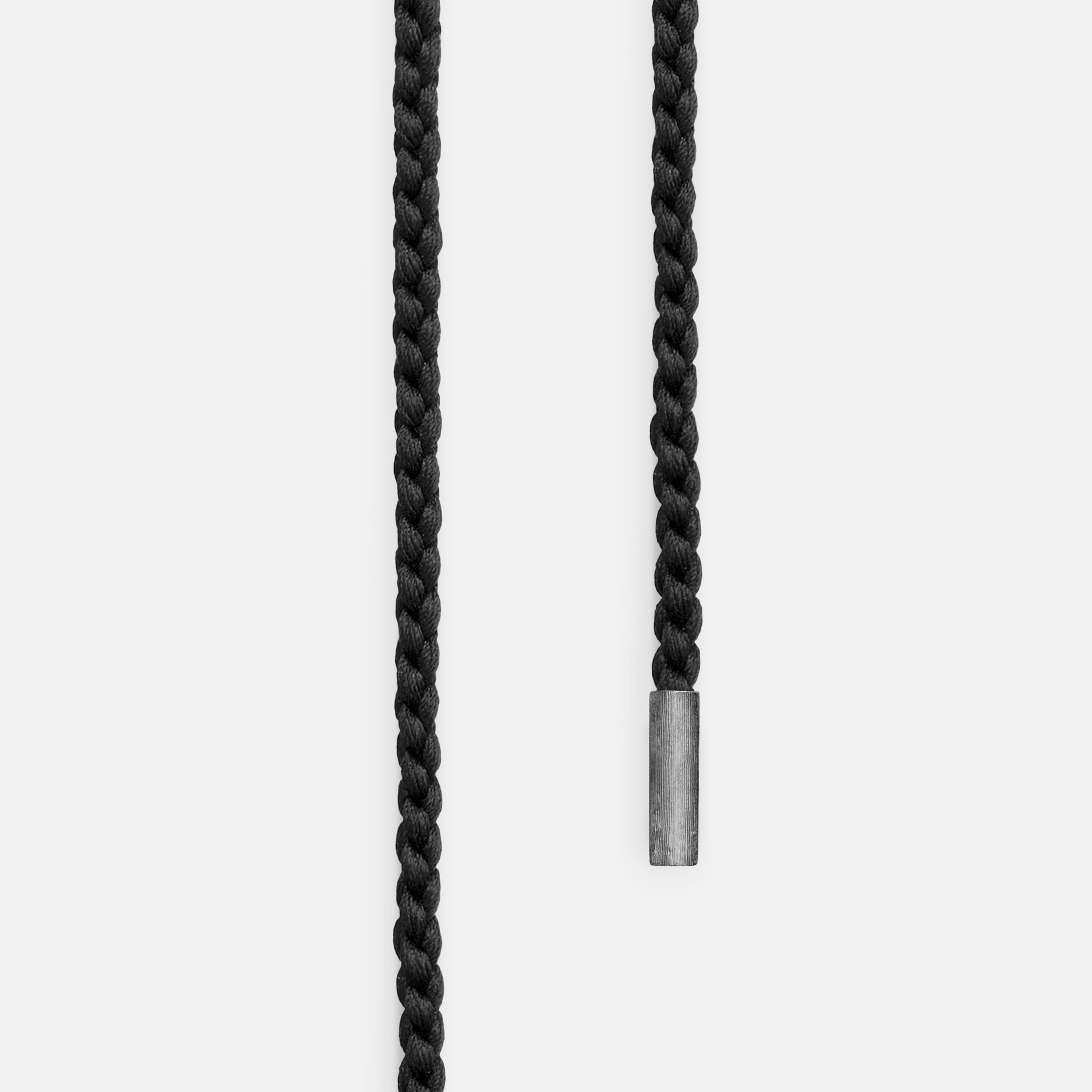 Designed by Charlotte Lynggaard, the Mokuba silk String necklace in black is crafted from pure silk with oxidized, textured, Sterling silver end pieces. Total length is 130 cm. Part of the Ole Lynggaard Copenhagen Collection.