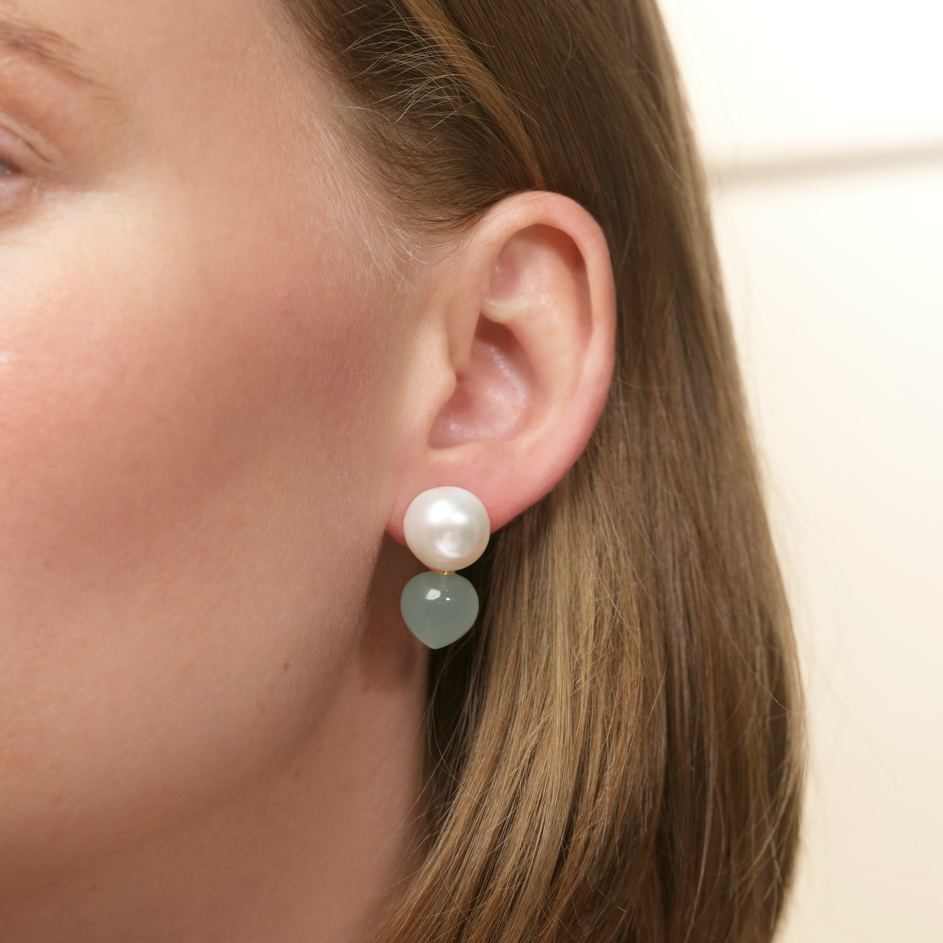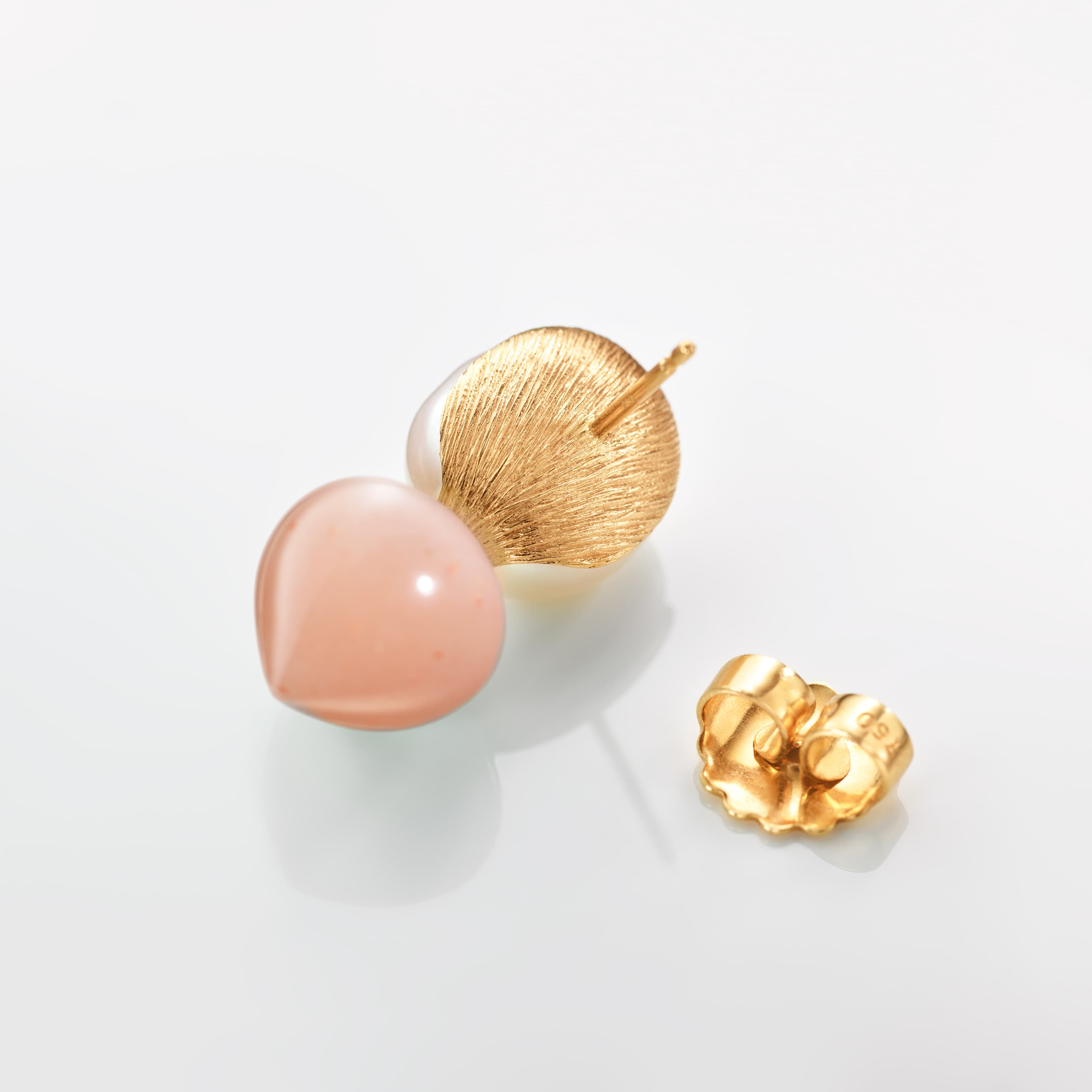 These Shell stud earrings, designed by Sofia Lynggaard Normann, are crafted from 18 karat yellow gold, two baroque freshwater pearls, and two blush moonstones. Each pearl is set in a small sea shell crafted from gold. Please note: As gemstones are natural materials, each stone is absolutely unique. They will vary in colour and have individual, unique inclusions and features. Web-images of stones are only representatives of the unique stone you will receive when ordering the product, not the exact stone. Sold as a pair. Part of The Young Fish Collection.