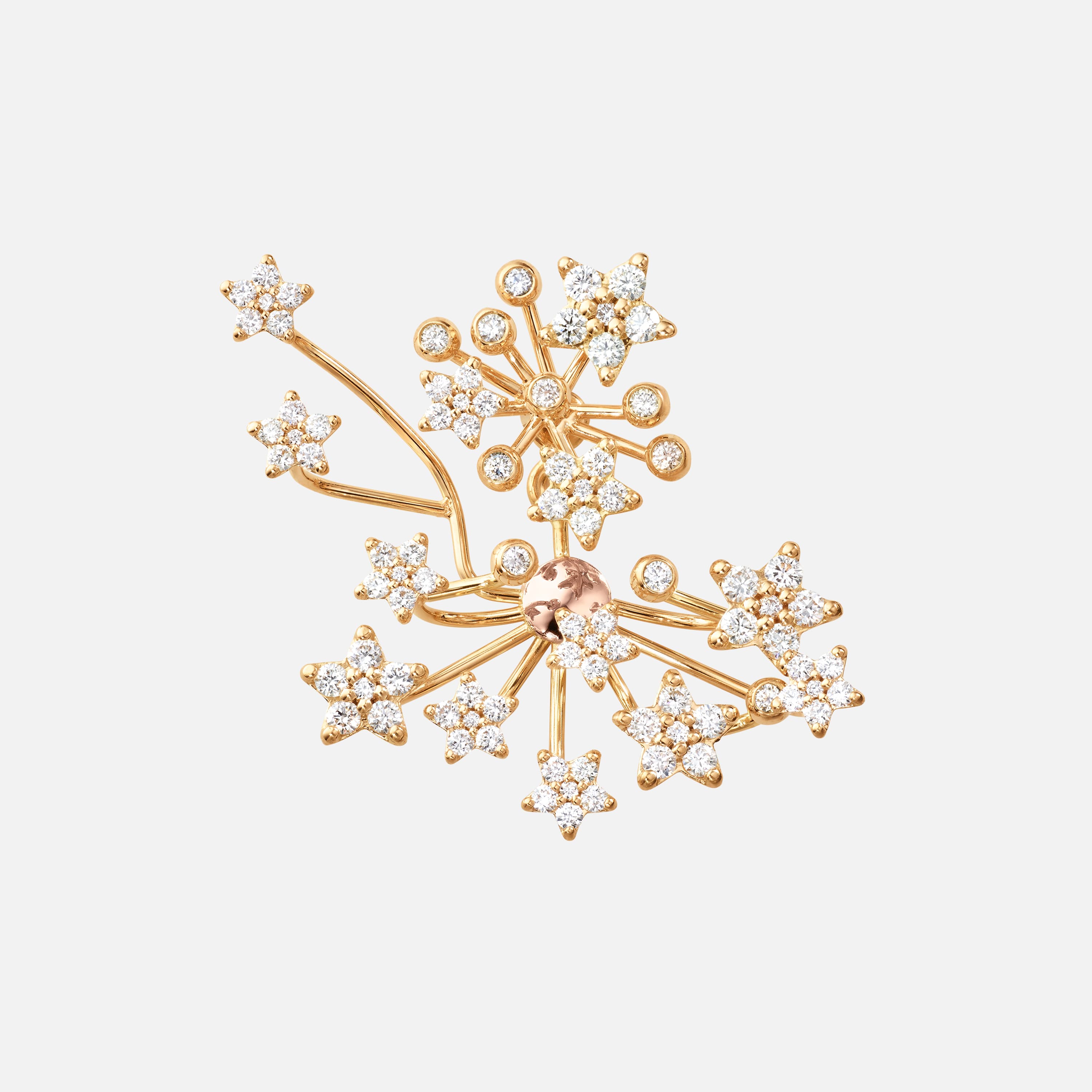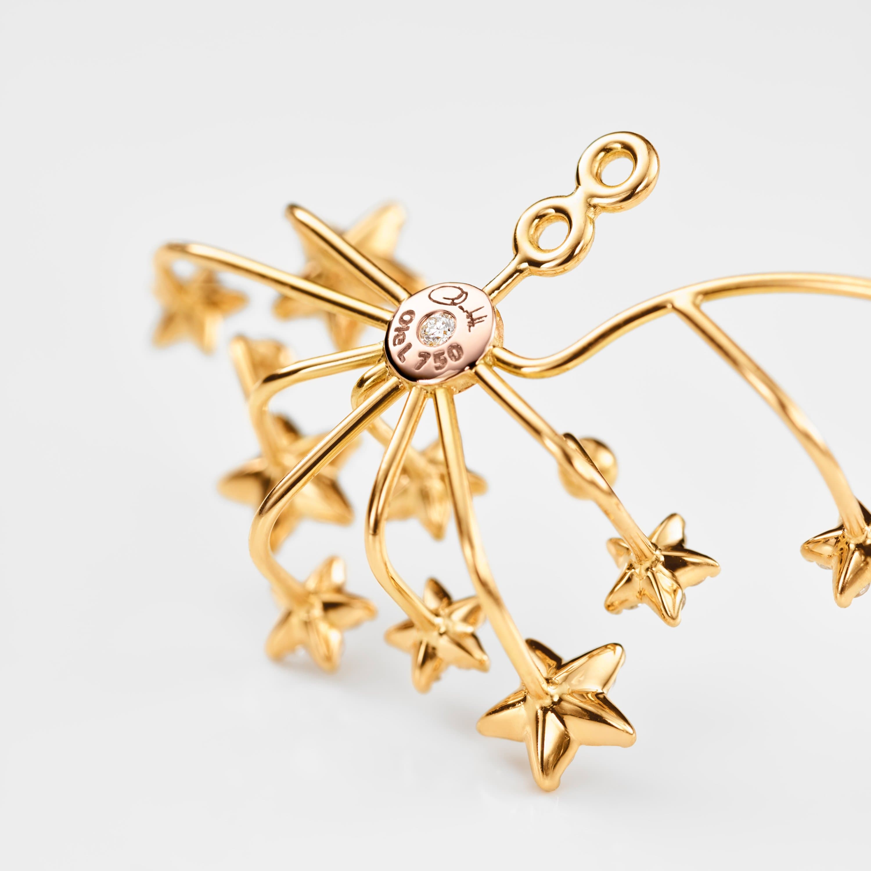 Designed by Charlotte Lynggaard, this Shooting Stars earring pendant is crafted from 18 karat yellow gold and 63 diamonds totalling 0.45 ct. TW VS. The design features a sky of stars, with each star comprising six brilliant-cut diamonds, raised from the surface to allow light through the facets. The gold surfaces are hand-polished by master goldsmiths. The Shooting Stars earring pendant is designed to be added to a Shooting Stars stud earring from behind the earlobe, thereby allowing it to be effortlessly attached to and detached from various earrings. The pendant is available as both left and right. Sold as a single piece. Part of The Shooting Stars Collection.