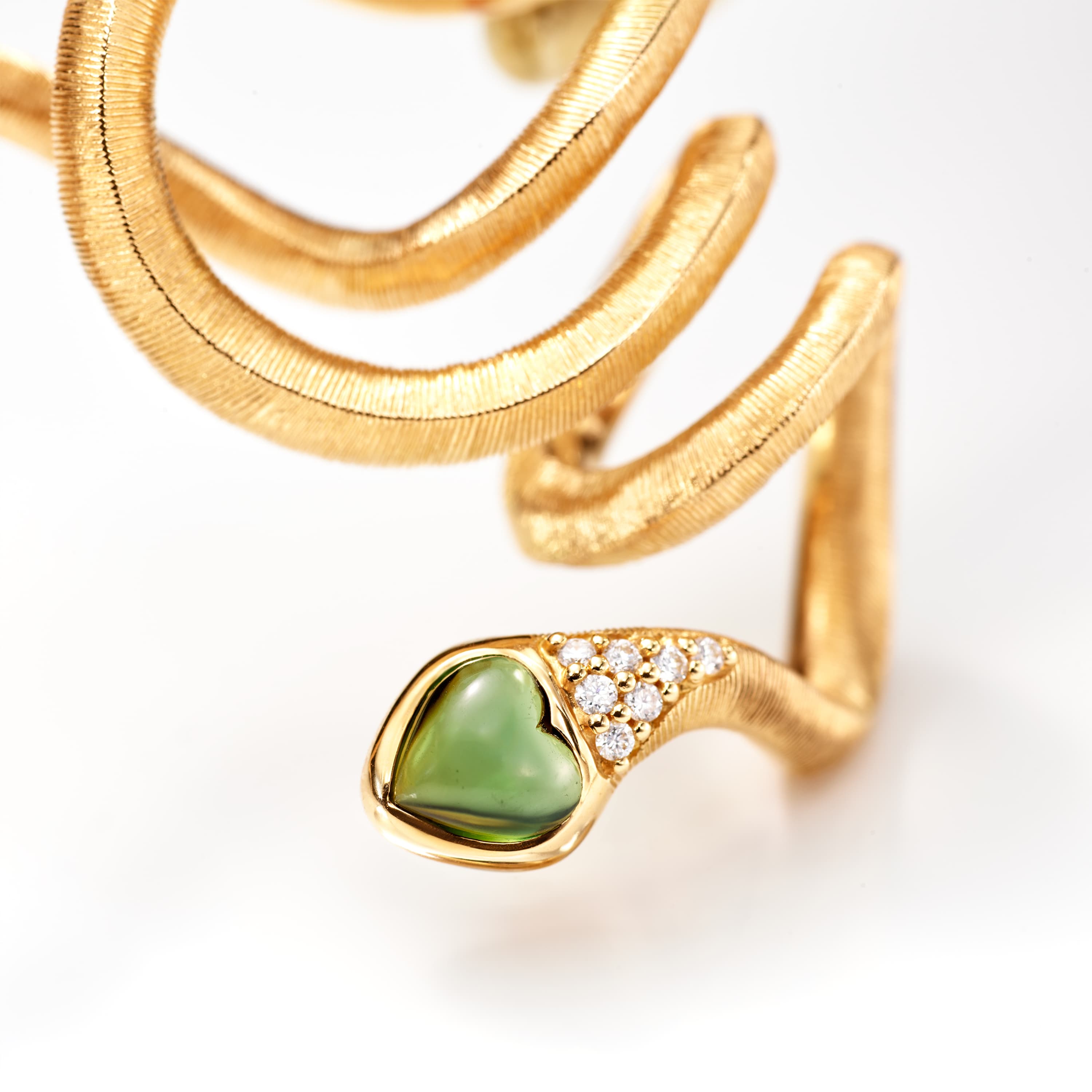 18k gold, green tourmanline and diamonds 0.19 ct. TW. VS.