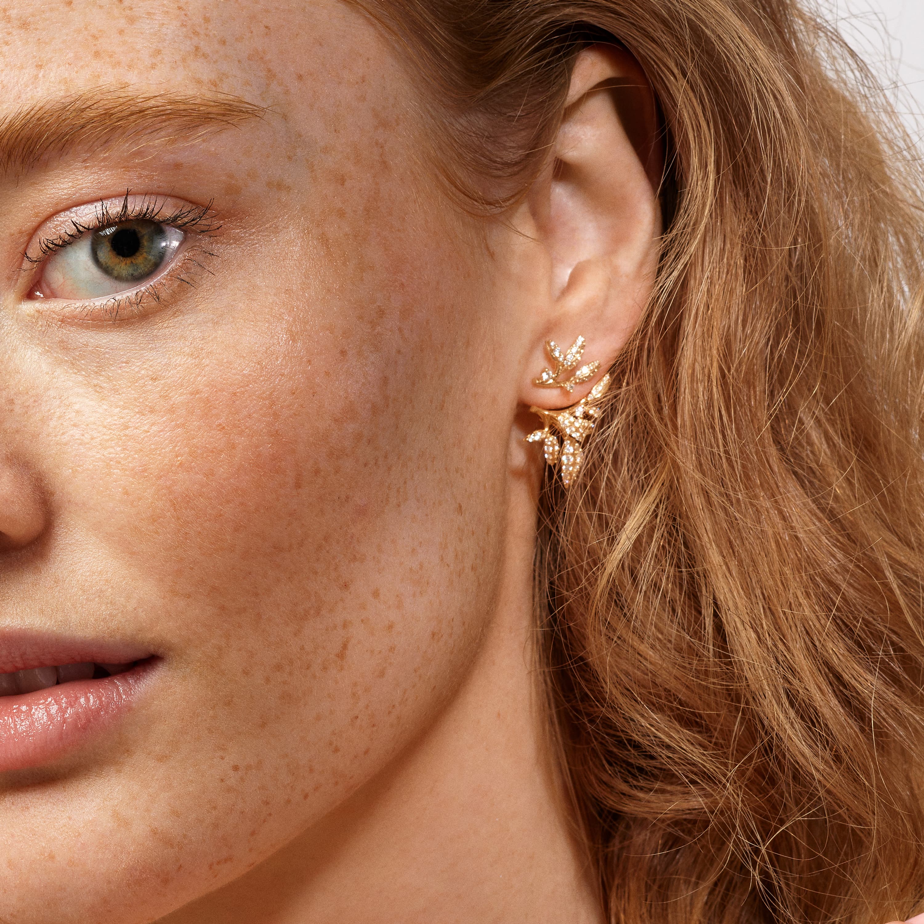 Designed by Charlotte Lynggaard, the Winter Frost earring pendant small is crafted from 18 karat yellow gold and set with 56 diamonds totalling 0,3 carat TW. VS. The diamonds, which are of varying sizes, are hand-set by master goldsmiths to follow the shape of the leaves. Sold as a single piece. Part of the Winter Frost Collection.