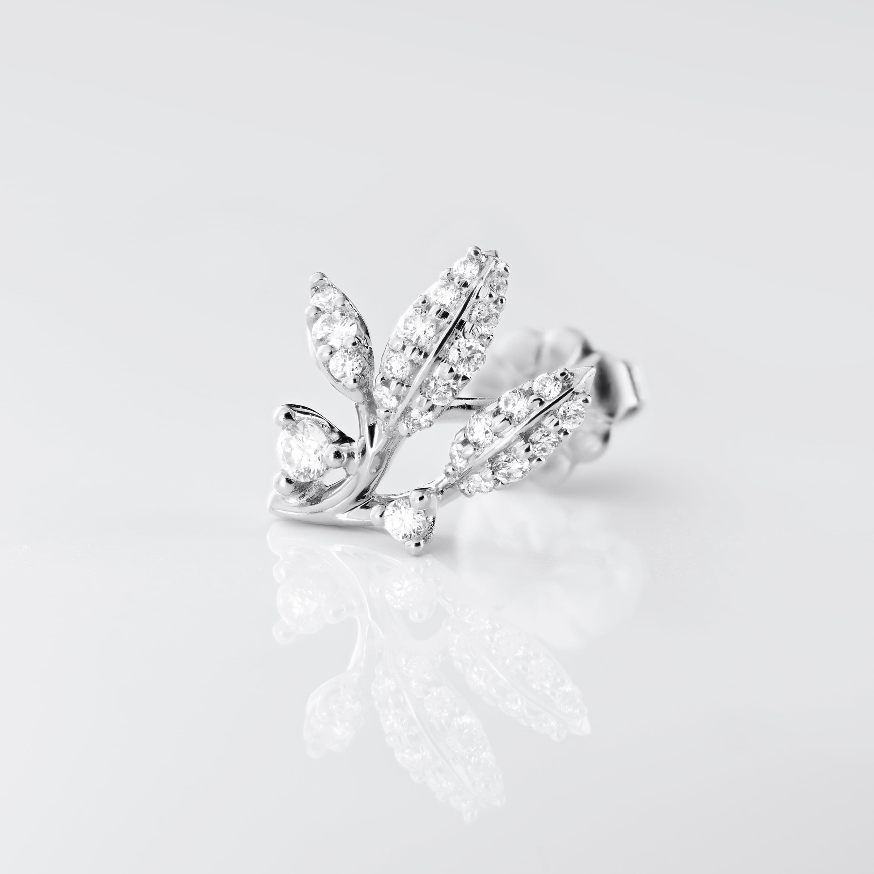 Designed by Charlotte Lynggaard, the Winter Frost stud earrings are crafted from 18 karat white gold and 46 diamonds totalling 0,29 carat TW. VS. The diamonds, which are of varying sizes, are hand-set by master goldsmiths to follow the shape of the leaves. Part of the Winter Frost Collection.