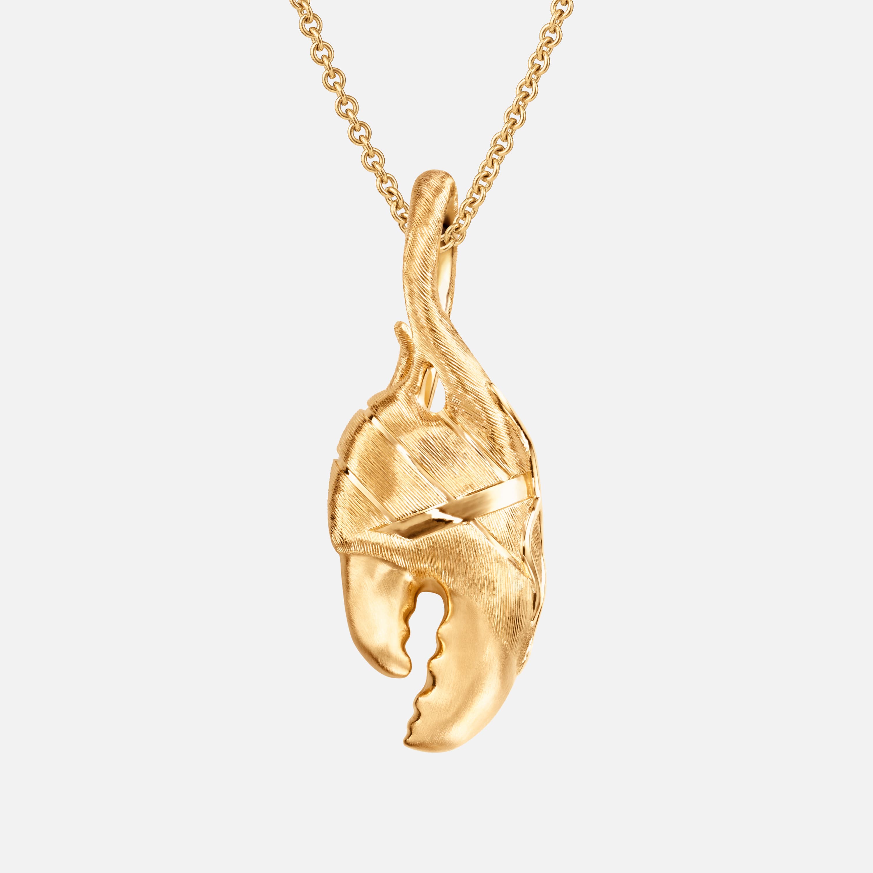 Designed by Sofia Lynggaard Normann. This large Claw pendant is crafted from 18 karat yellow gold. The claw has a detailed texture, composed by an advanced pattern of satinized, polished, sandblasted, and brushed surfaces, handcrafted by master goldsmiths. The length of the pendant is 5.5 cm. Part of The Young Fish Collection.